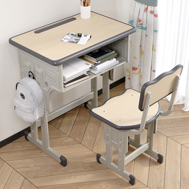 Student Desk with Side Storage Bag and Hook in Wood and Metal