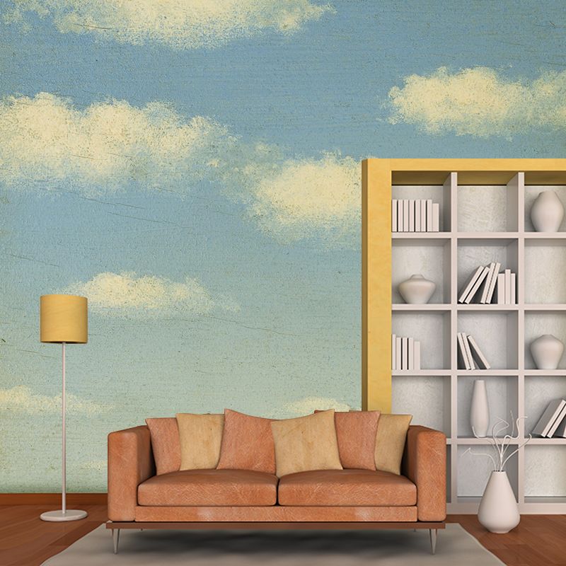 Sunny Day Wallpaper Mural in Blue-White Surrealism Wall Covering for Accent Wall