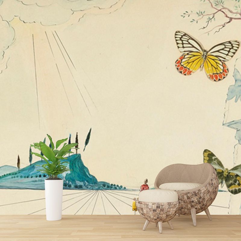 Surreal Butterflies Street Scene Mural Beige Water-Proof Wall Decor for Home Gallery