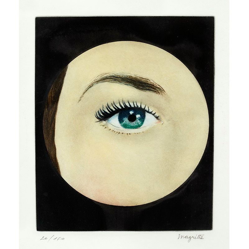 Surreal Magritte Artwork L'Oeil Mural Grey-Yellow Stain Proof Wall Decor for Living Room
