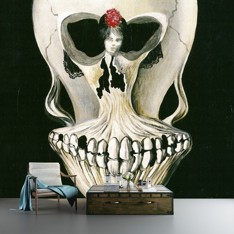 Surrealism Art Mural Wallpaper Black-White Ballerina in a Deaths Head Wall Decoration