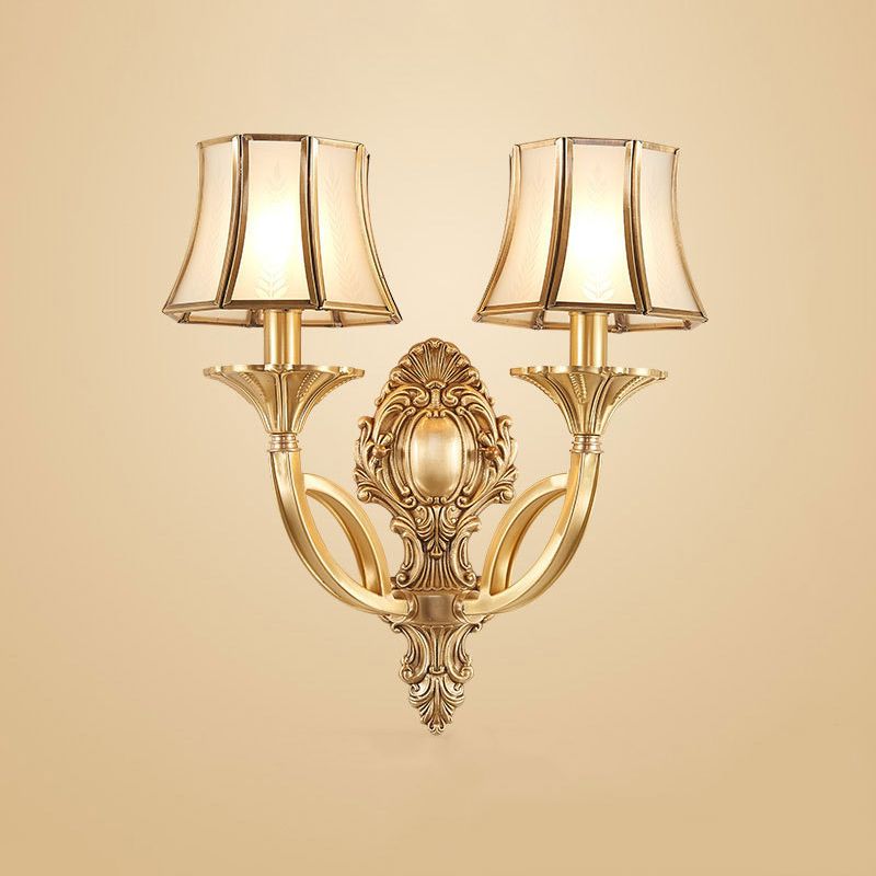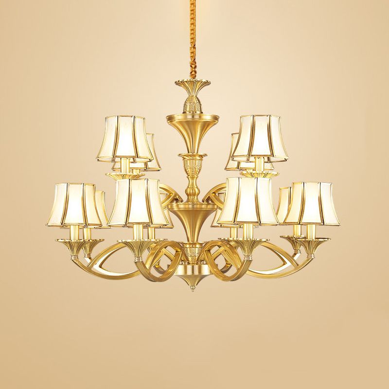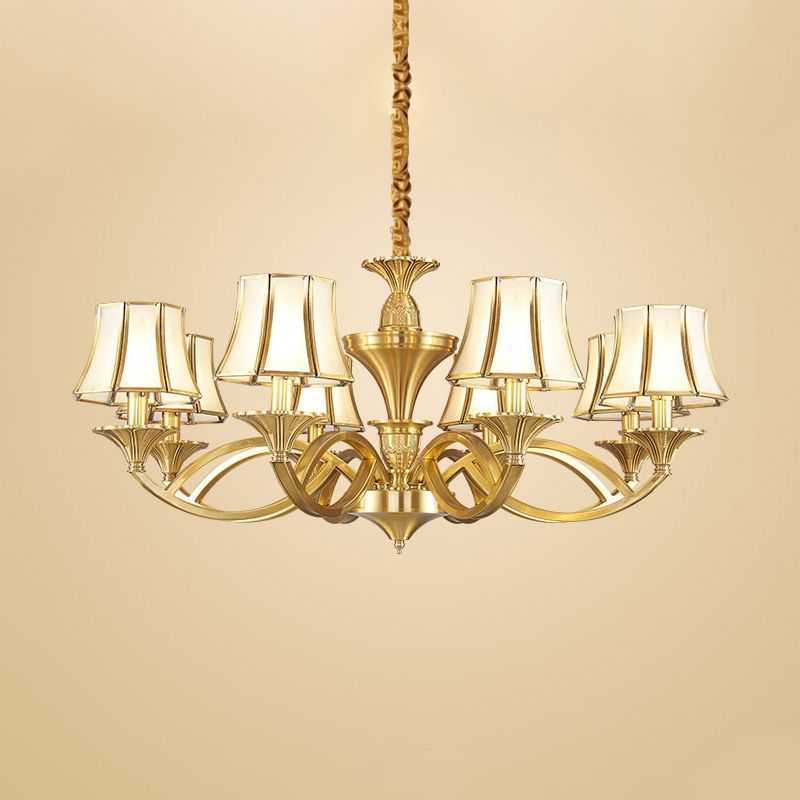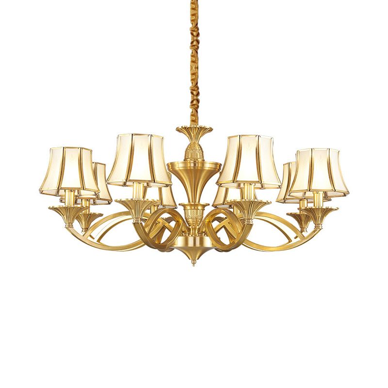 Taper Shaped Patterned Glass Chandelier Lighting Classic Living Room Pendant Light in Gold