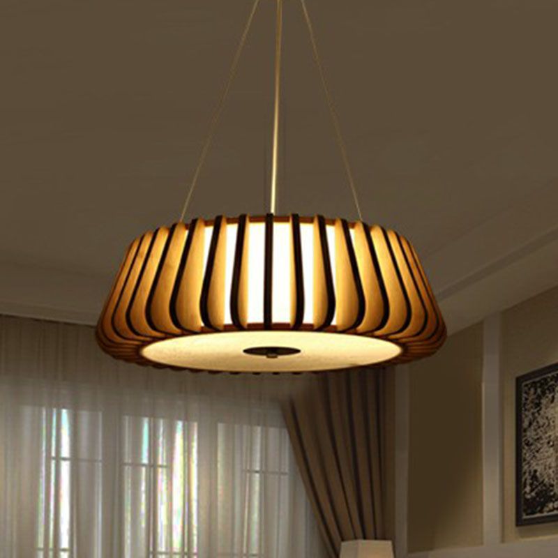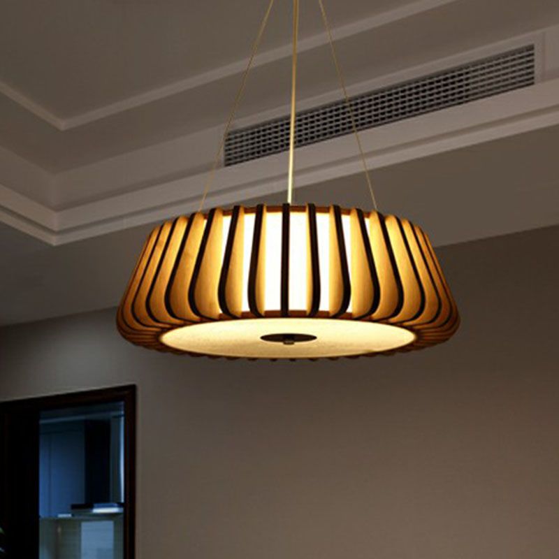 Tapered Drum Chandelier Pendant Light Contemporary 3 Bulbs Living Room Hanging Light in Wood