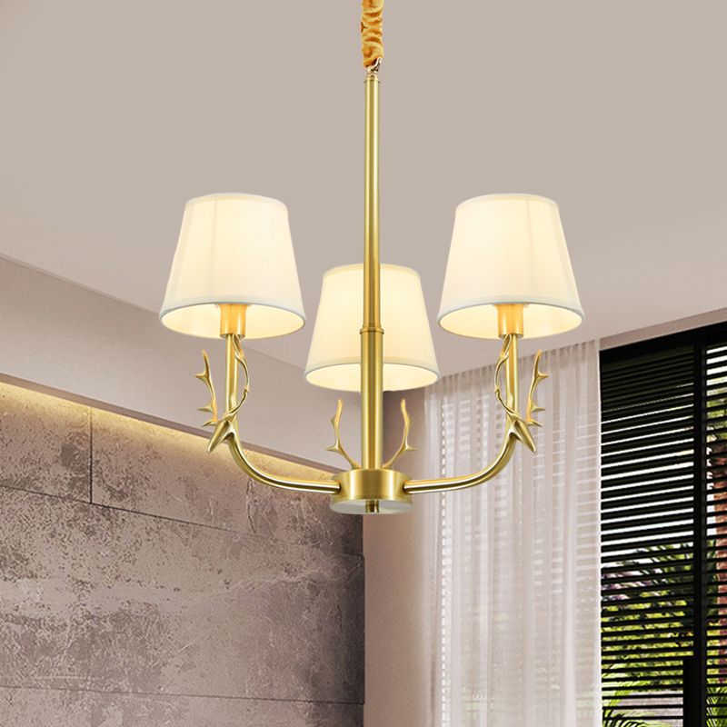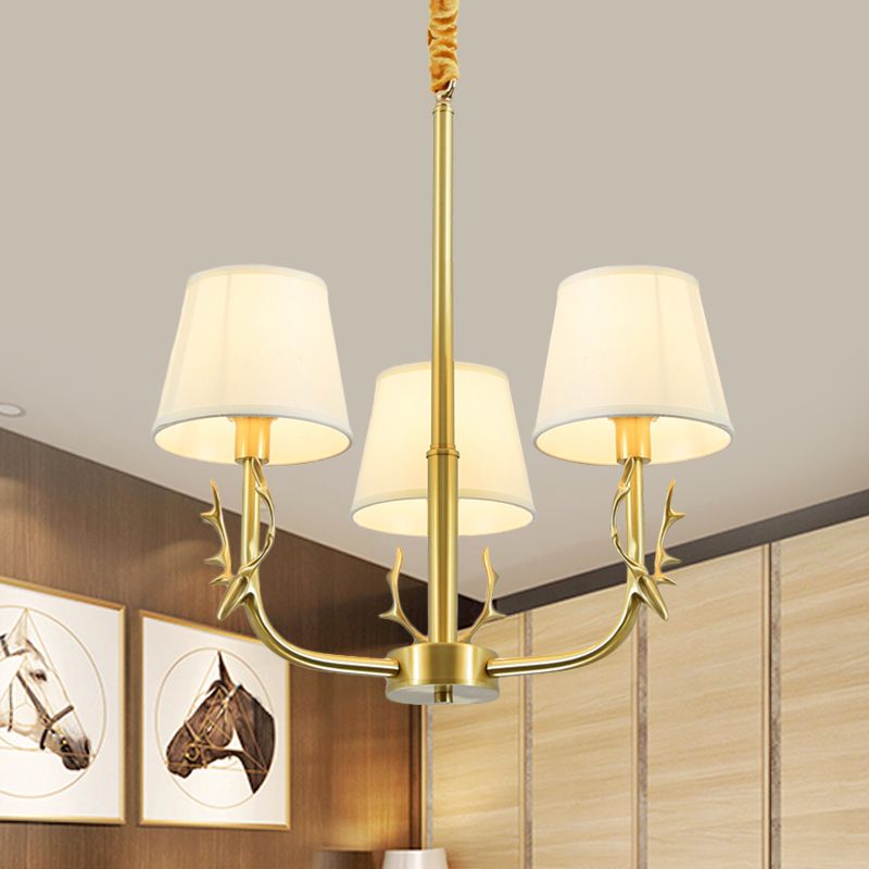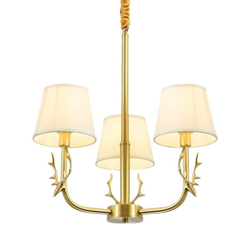 Tapered Fabric Chandelier Colonialism 3/6/8 Lights Living Room Pendant in Gold with Copper Deer Head