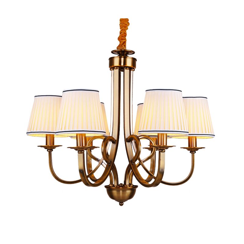 Tapered Fabric Chandelier Light Rustic 6/8 Light Dining Room Ceiling Light Fixture in Gold