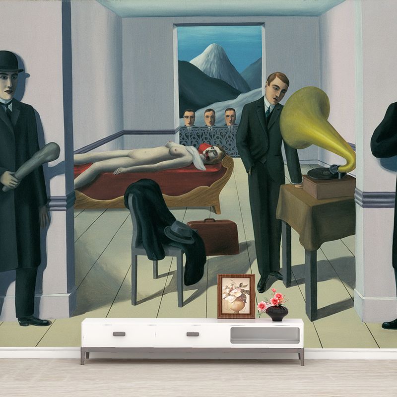 The Menaced Assassin Mural Decal Black-Grey Surrealism Wall Art for Home Decoration