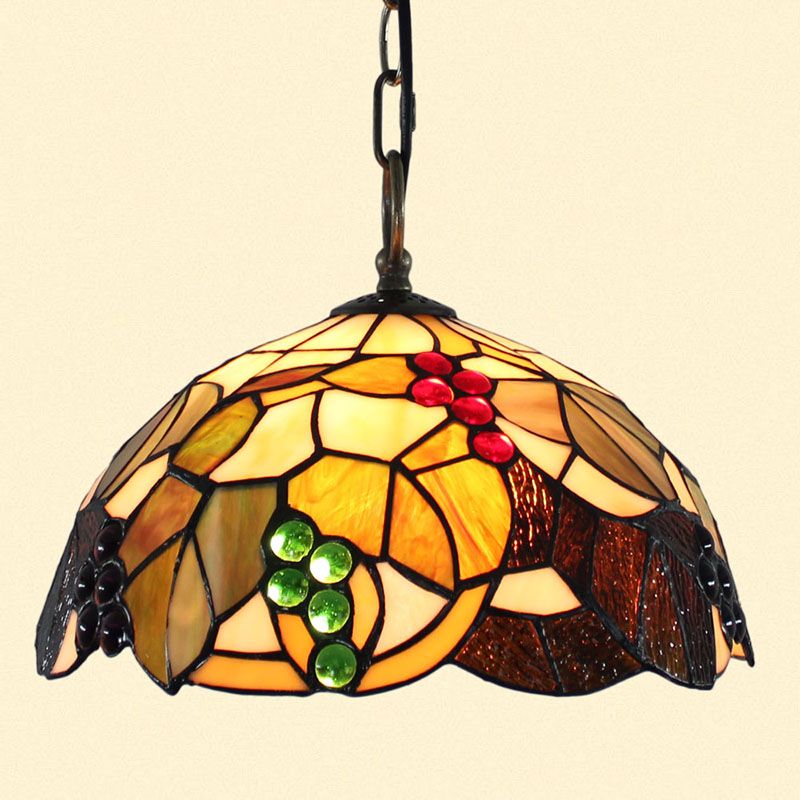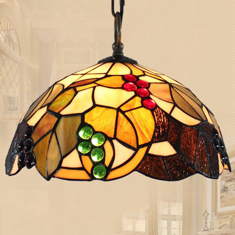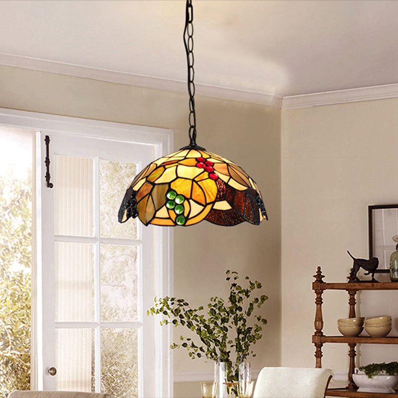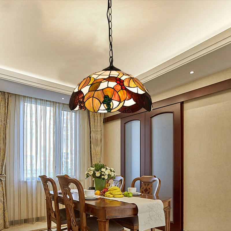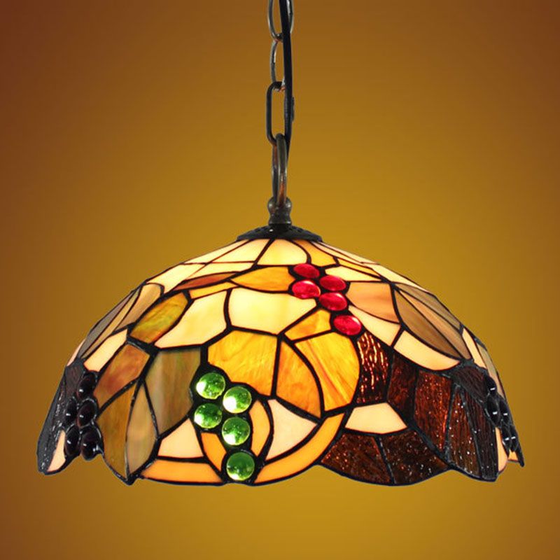 Tiffany 1-Light Pendant Lighting Grapes and Leaf Stained Glass Hanging Ceiling Light