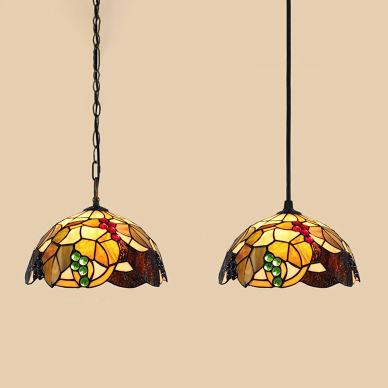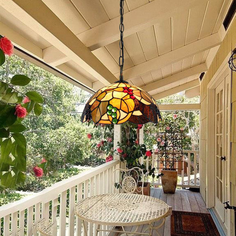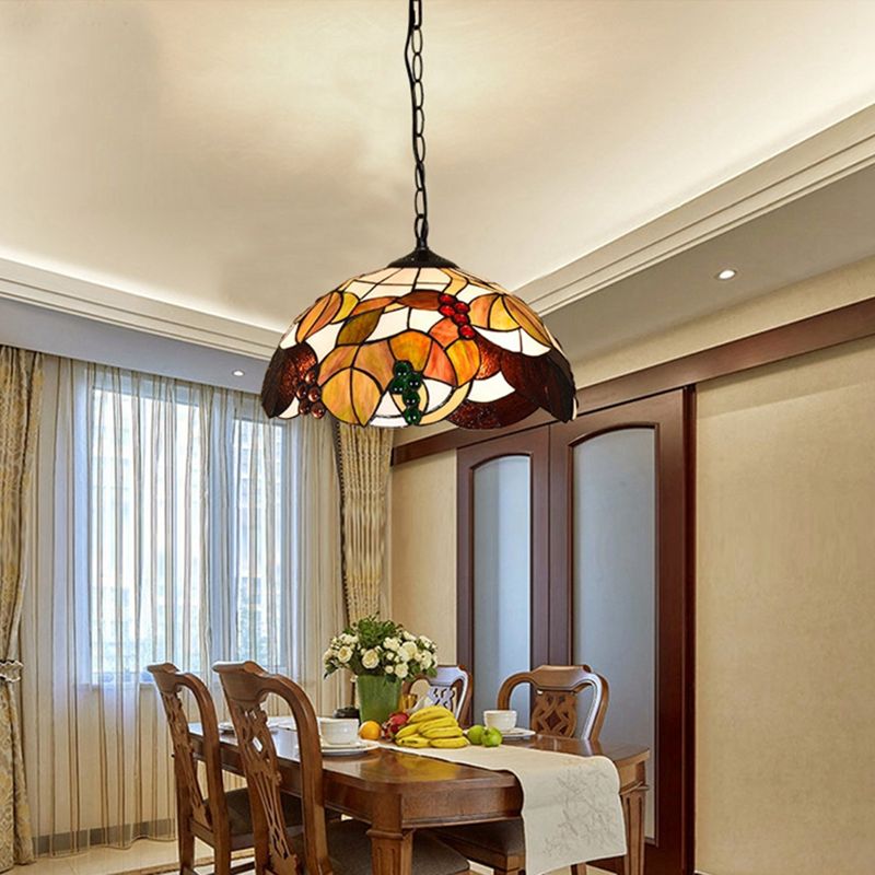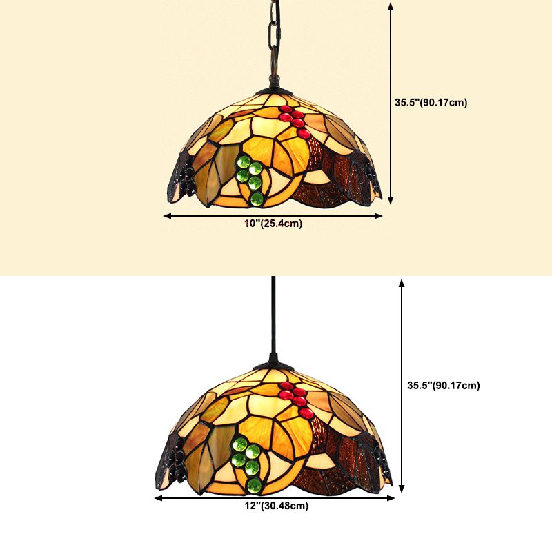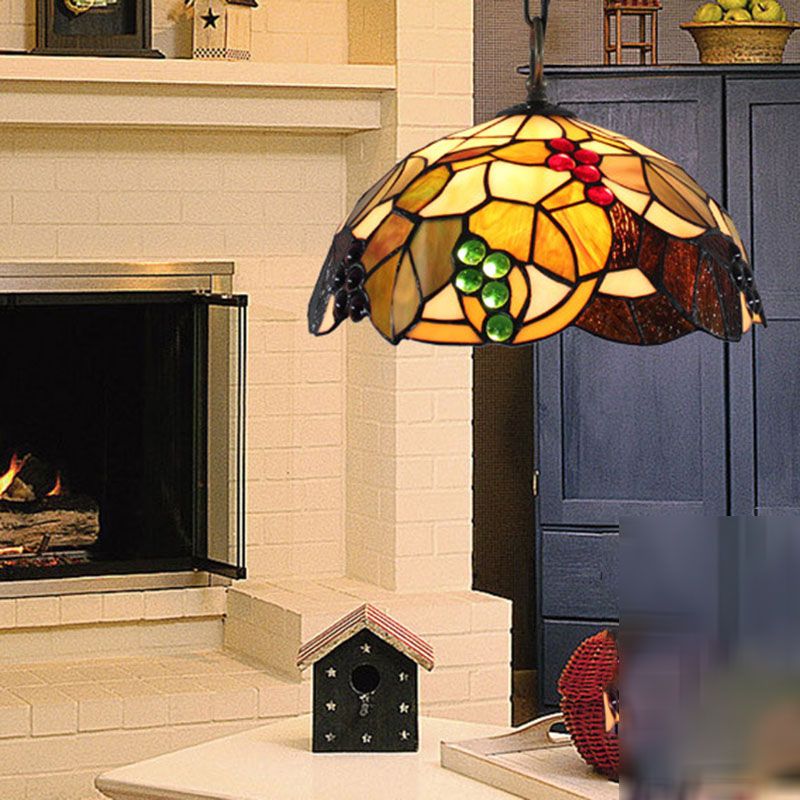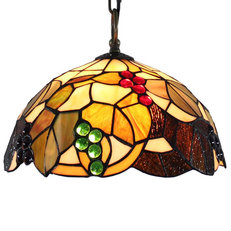Tiffany 1-Light Pendant Lighting Grapes and Leaf Stained Glass Hanging Ceiling Light