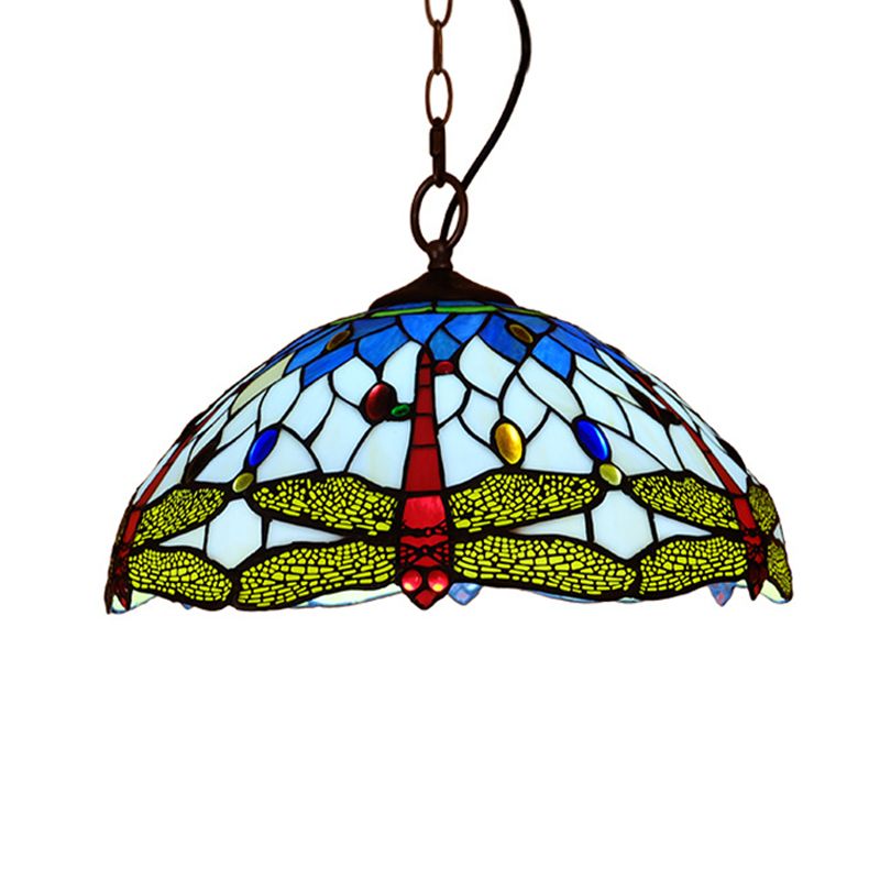Tiffany Dragonfly Pendant Lighting Fixture 1 Light Stained Glass Ceiling Light in Red/Yellow/Blue for Kitchen