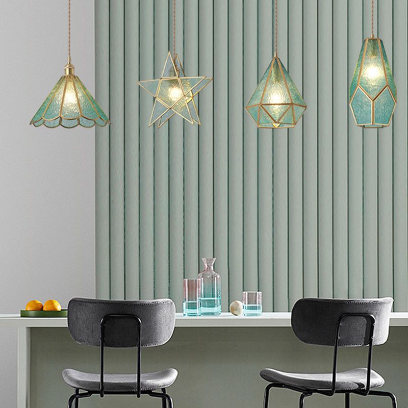 Tiffany Style Geometry Shape Hanging Light Glass Single Light Hanging Light Fixture