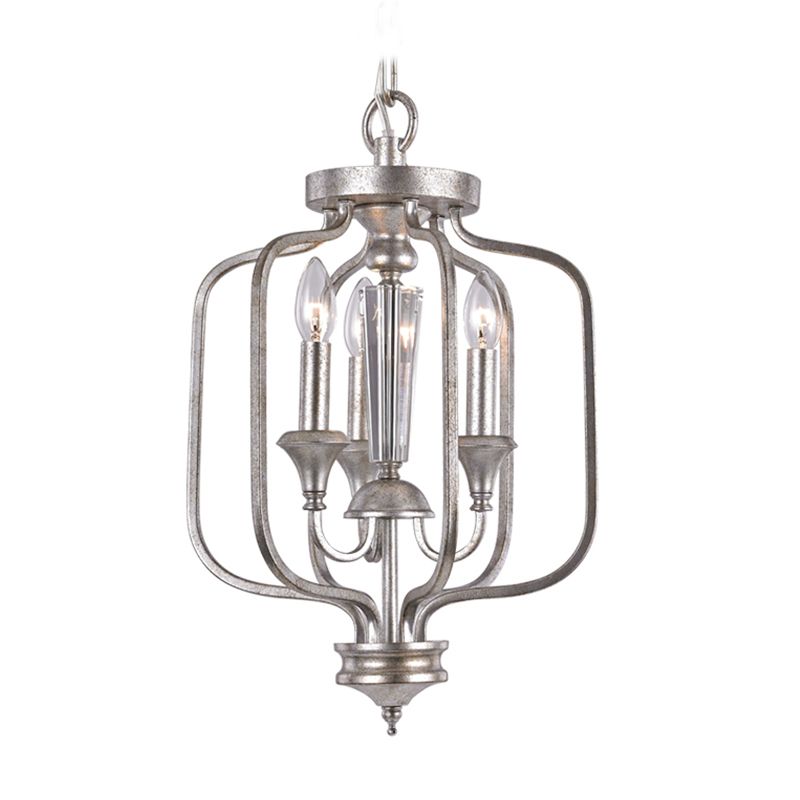 Traditional Candle Hanging Chandelier Metal 3 Bulbs Suspension Light in Aged Silver for Dining Room