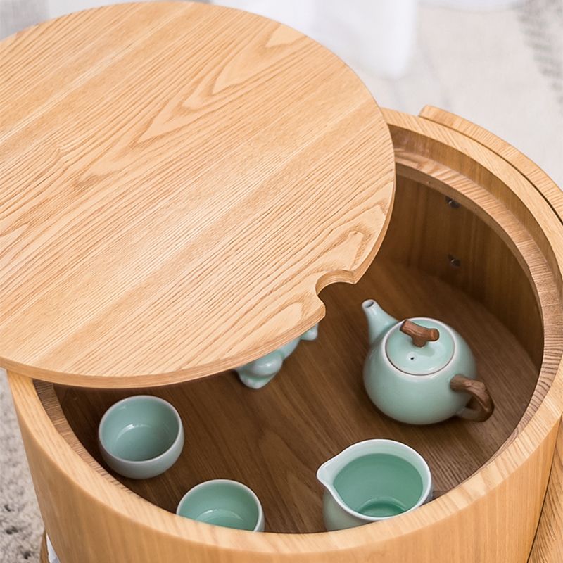 Traditional Side End Snack Table with Shelf and Tray Top for Bedroom