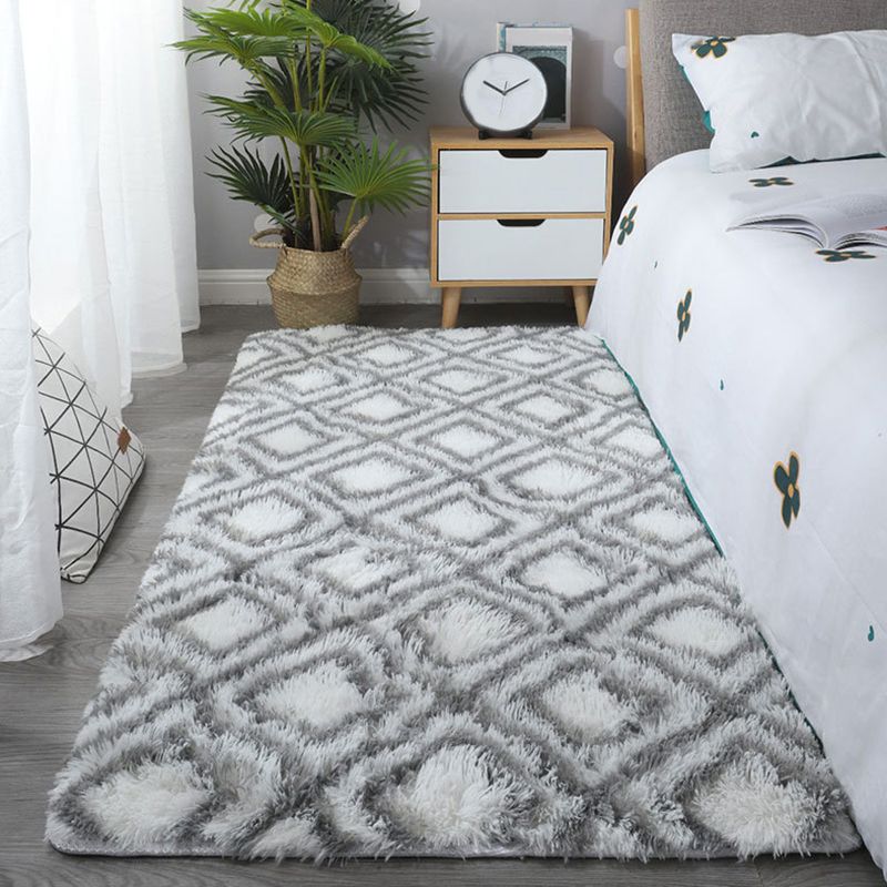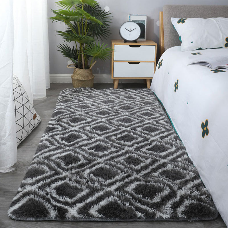 Trendy Geometric Print Rectangle Shag Faux Fur Living Room Indoor Rug