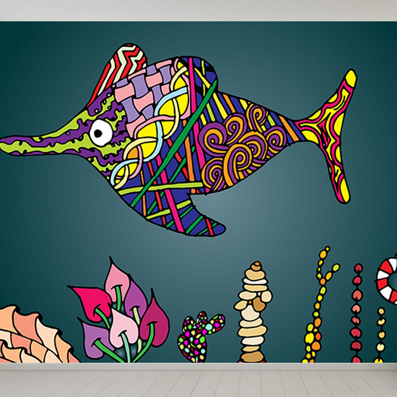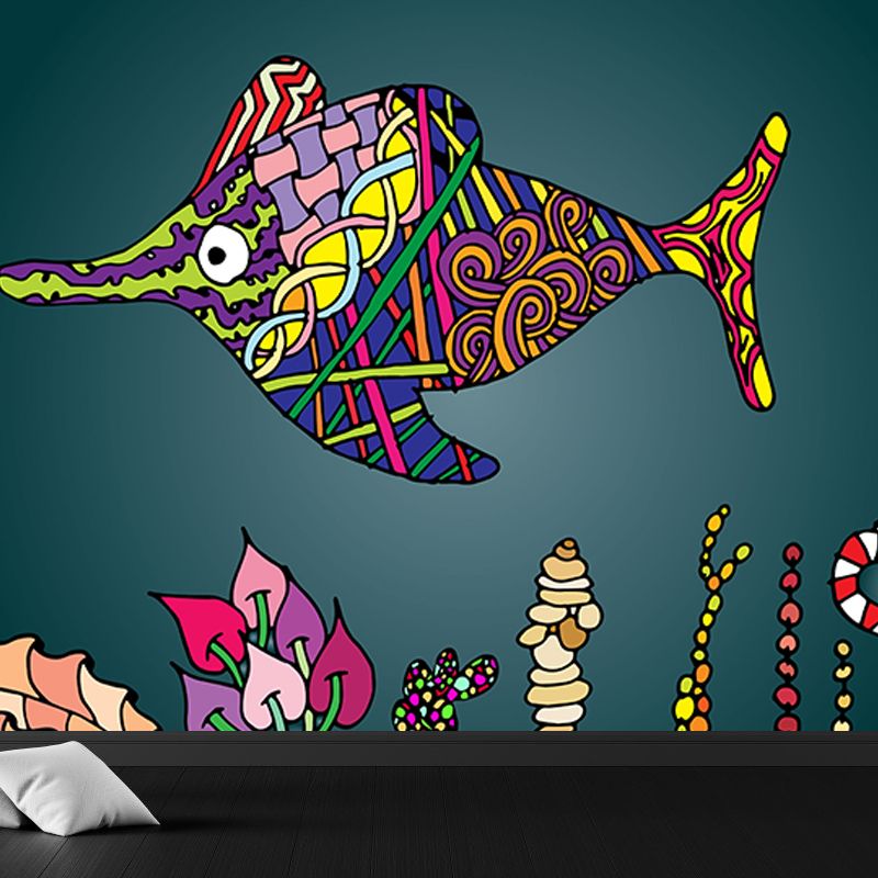 Tropical Underwater Life Mural Decal Moisture Resistant Contemporary Bedroom Wall Covering