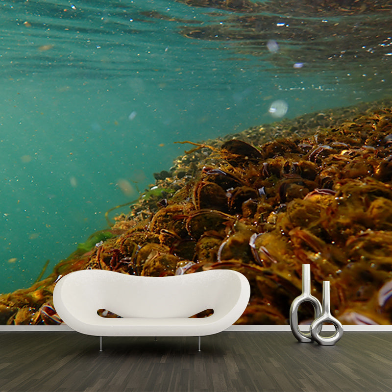 Tropical Underwater Life Mural Wallpaper for Living Room Wall Covering in Soft Color