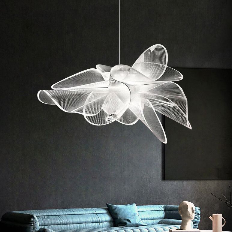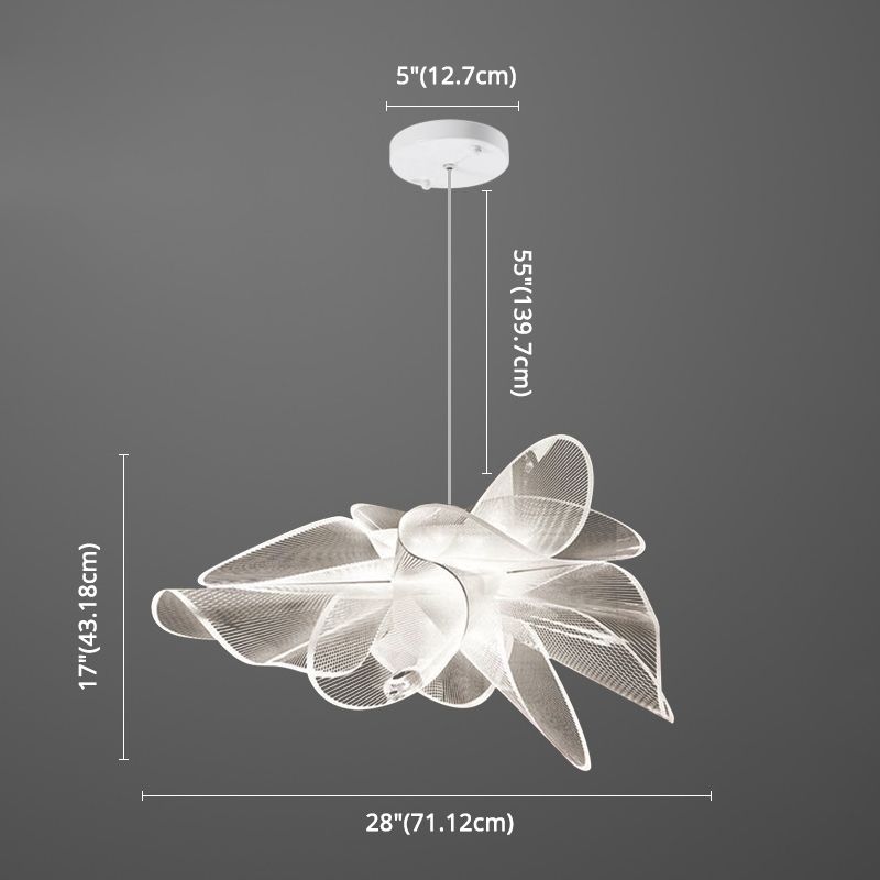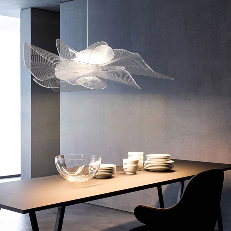 Tulle-Like Floral Chandelier Decorative Plastic Cafe LED Suspension Lighting Fixture in White