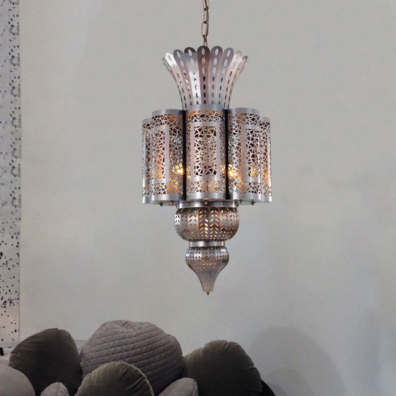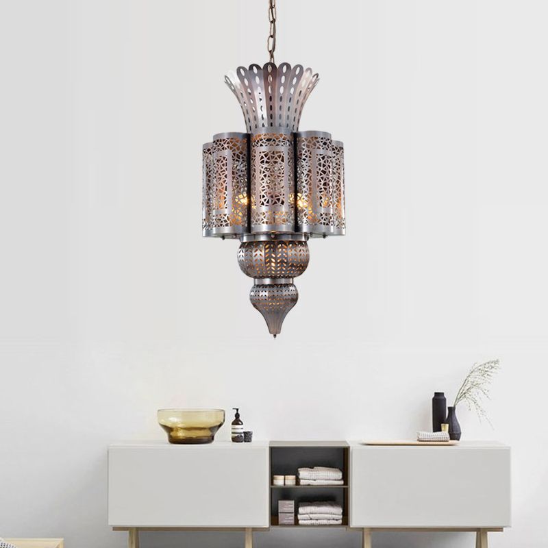 Vintage Hollow-Out Pendant Light 4 Bulbs Metallic Chandelier Ceiling Lamp in Bronze
