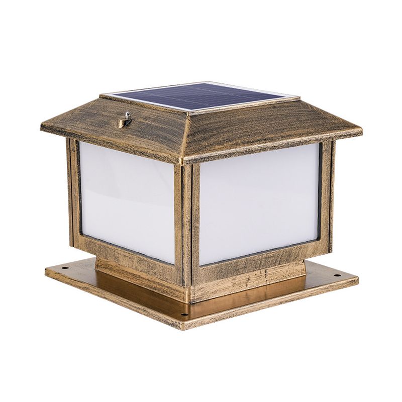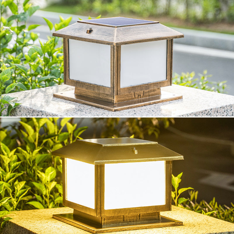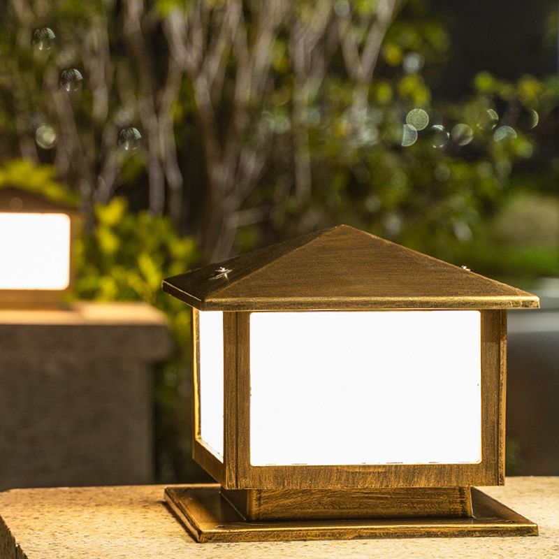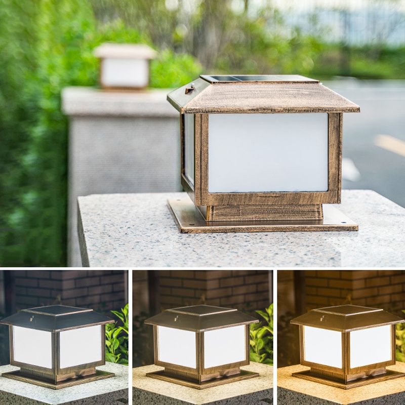Vintage Rectangular Shade Post Light Frosted Acrylic LED Landscape Lamp for Courtyard