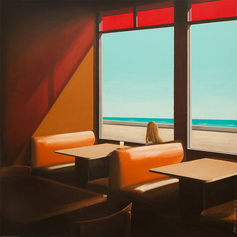 Waiting for Someone Painting Mural Red-Brown Modern Art Wall Decoration for Home