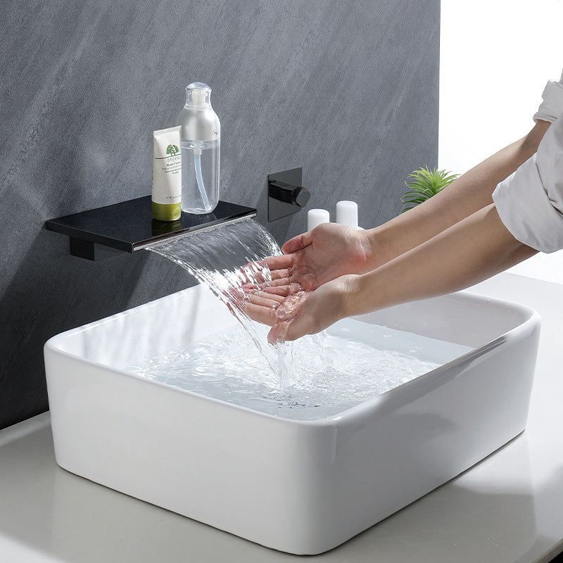 Wall Mounted 1 Handle Waterfall Faucet, Full Copper Hot and Cold Bathroom Basin Faucet
