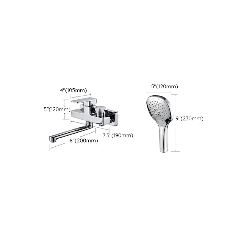Wall Mounted Bath Faucet Trim Chrome Polished Swivel Spout with Handshower