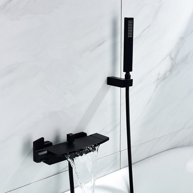 Wall Mounted Metal Tub Filler Double Handles Waterfall Faucet