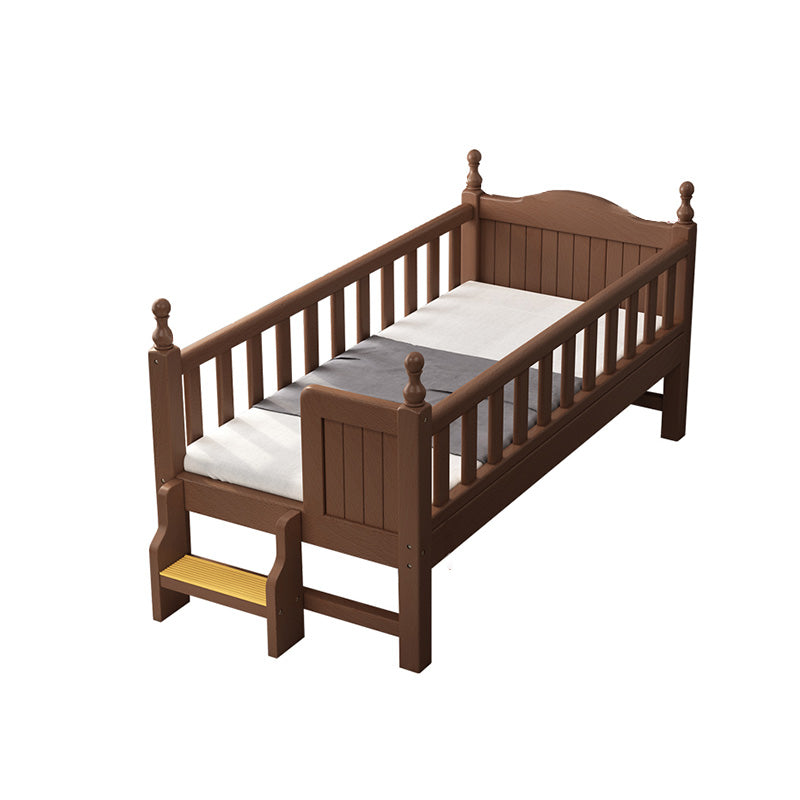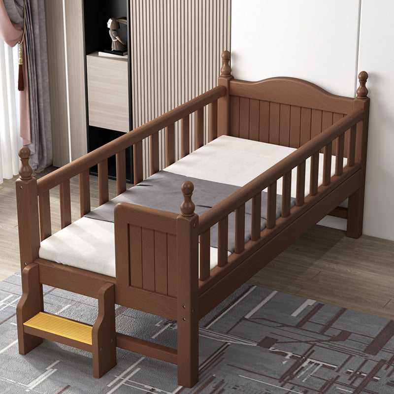 Walnut Color Baby Crib Traditional Beech Nursery Bed with Guardrails