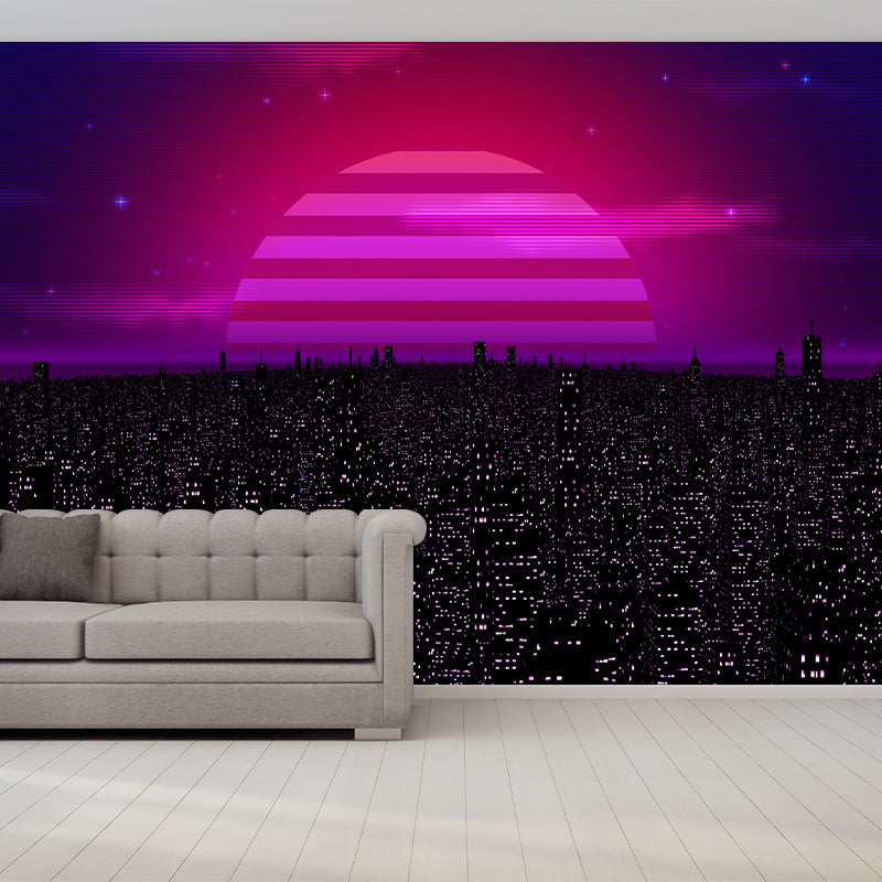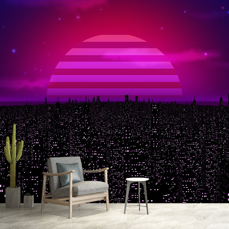 Washable Illustration Mural Wallpaper Cyberpunk Style Indoor Wall Mural