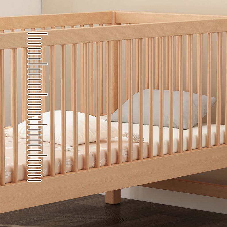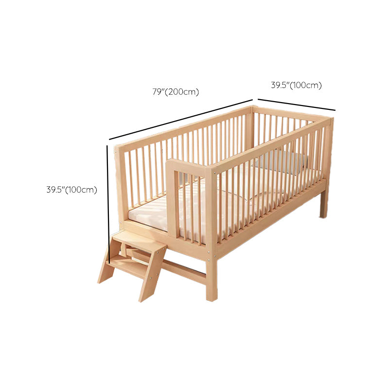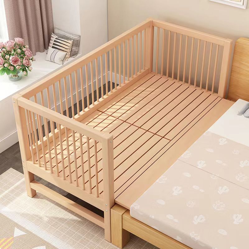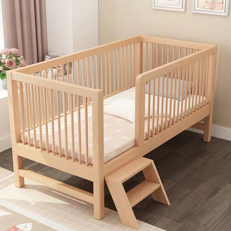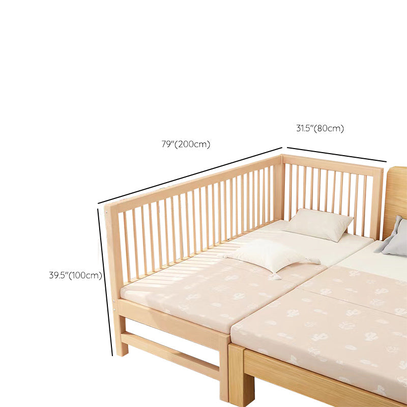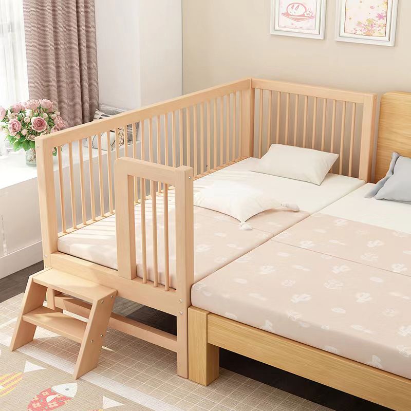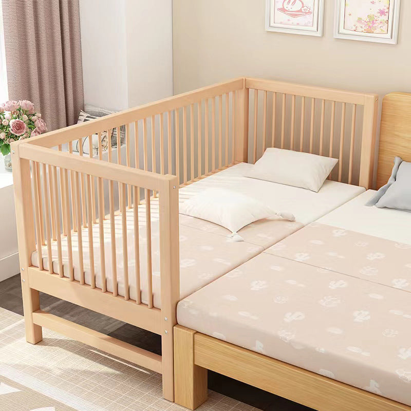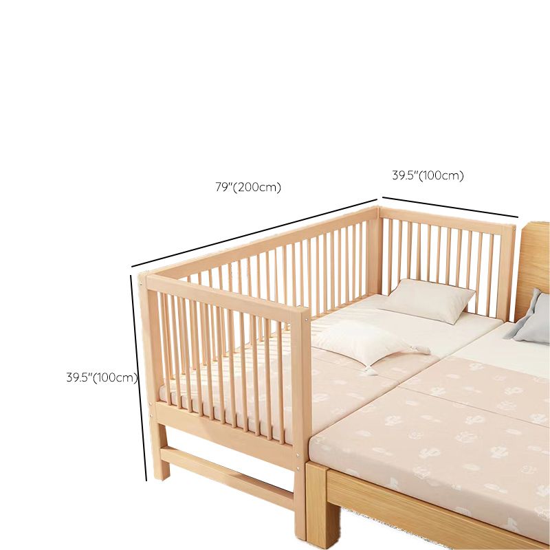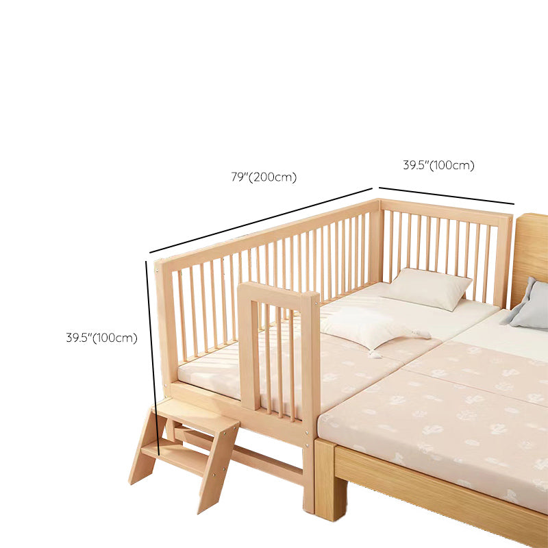 Washed Natural Solid Wood Contemporary Nursery Bed with Guardrail