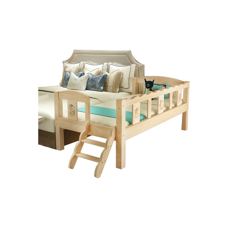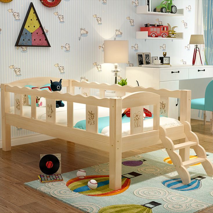 Washed Natural Solid Wood Nursery Crib Contemporary with Guardrail