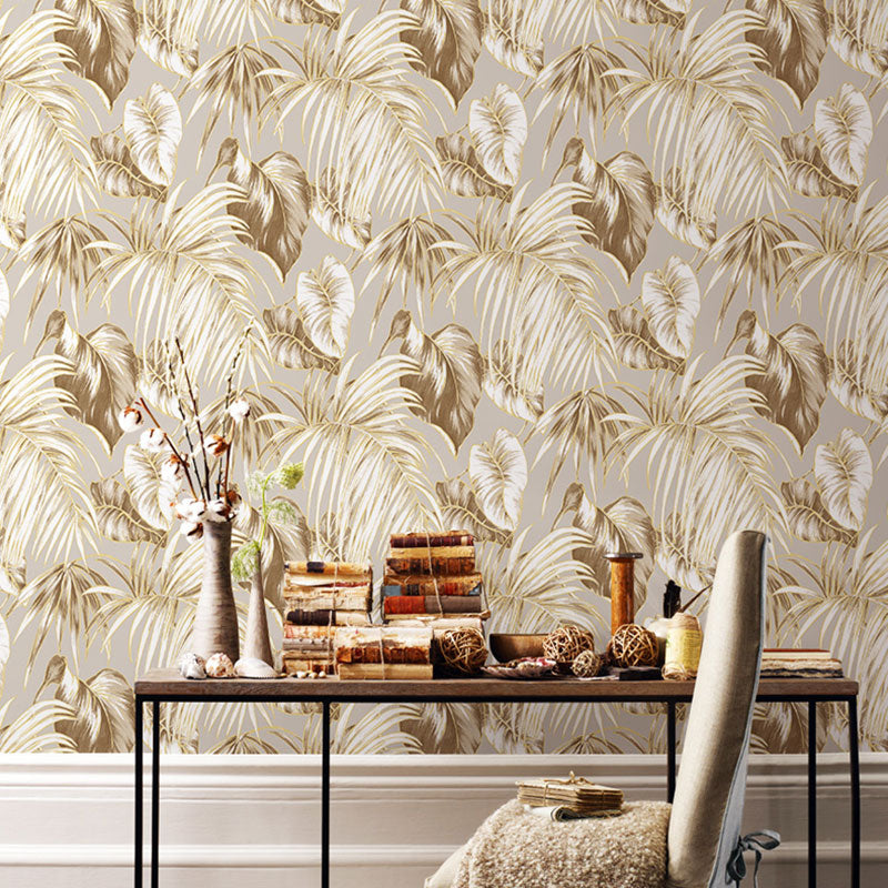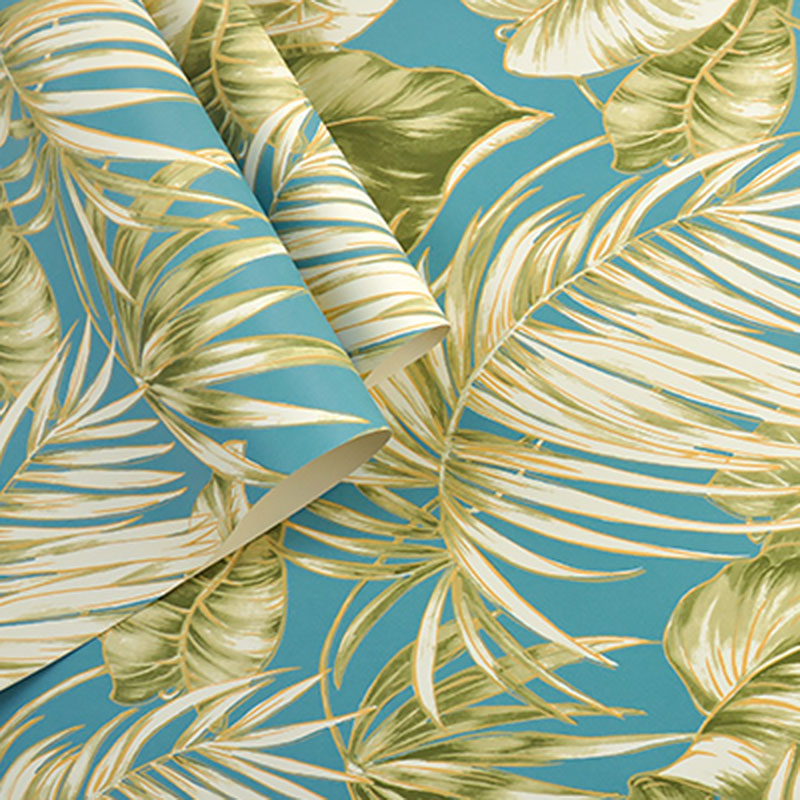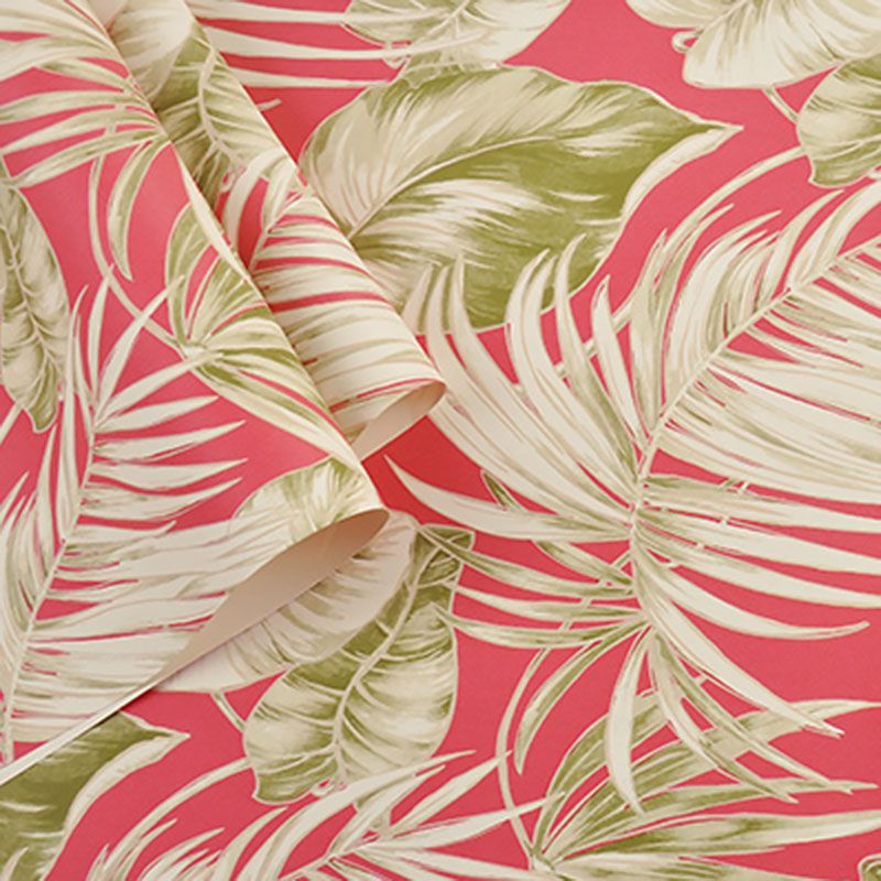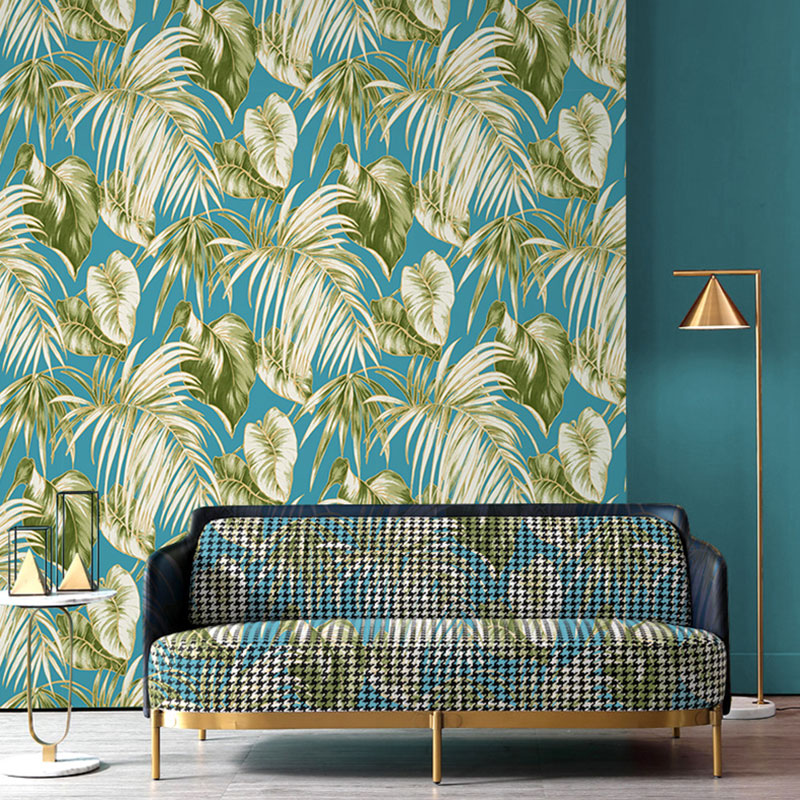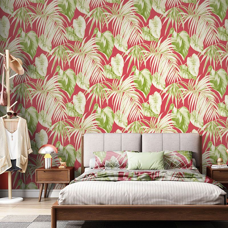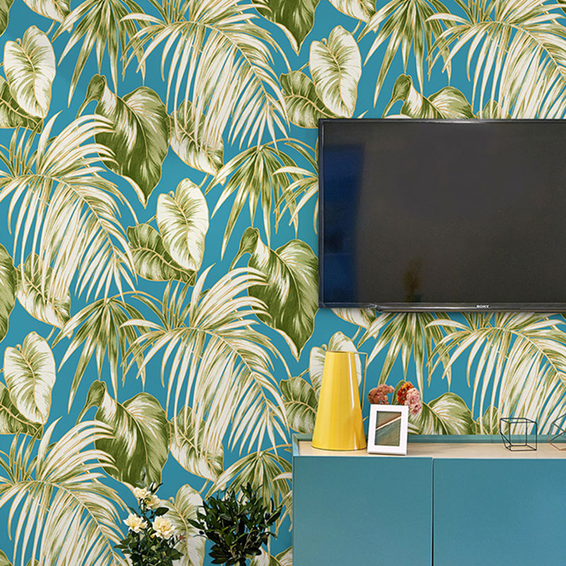 Water-Resistant Banana Leaves Wallpaper Roll 33' x 20.5" Minimalist Wall Art for Thai Restaurant