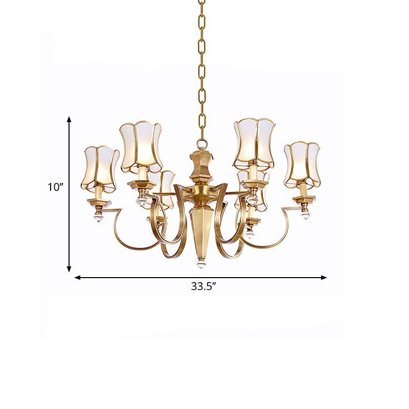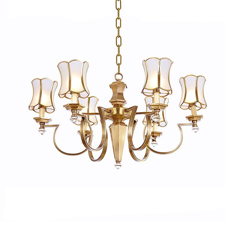 White 6 Bulbs Pendant Chandelier Colonialist Frosted Glass Wide Flare Ceiling Hang Light for Living Room