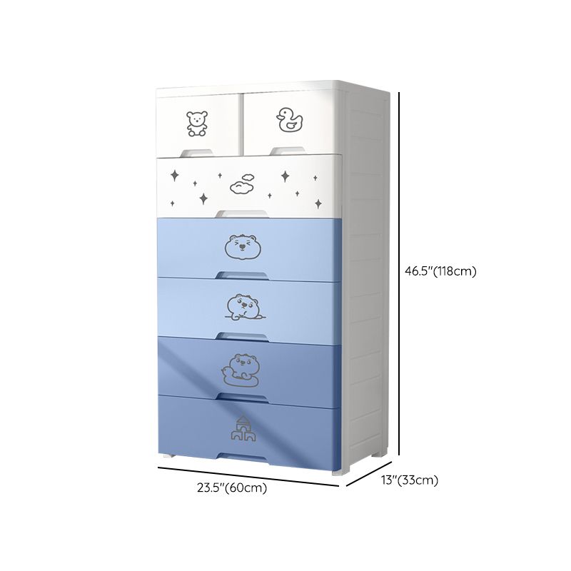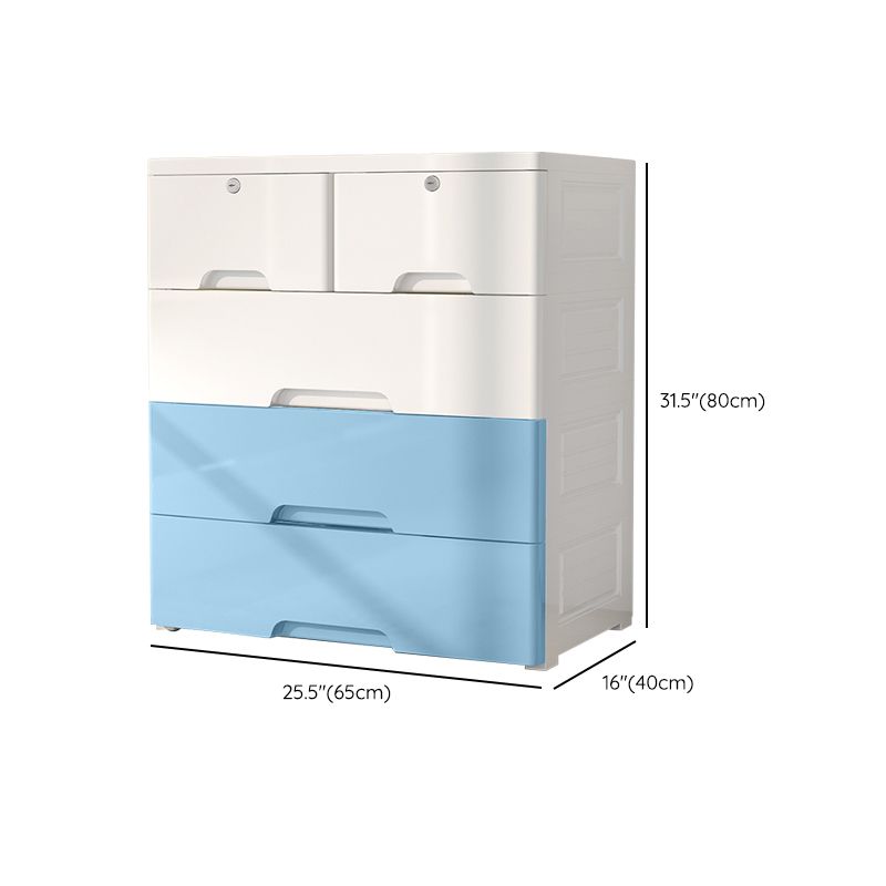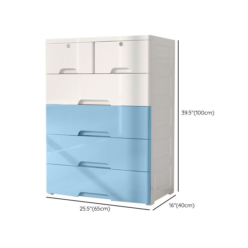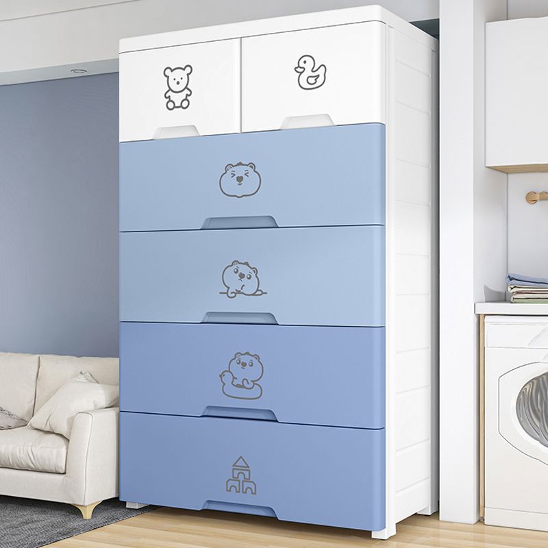 White and Blue Youth Armoire with Drawer Contemporary Coat Locker