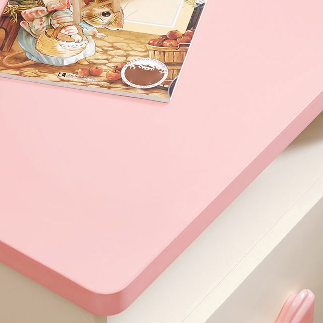 White and Pink Kids Nightstand Wooden Kids Bedside Table with Drawers