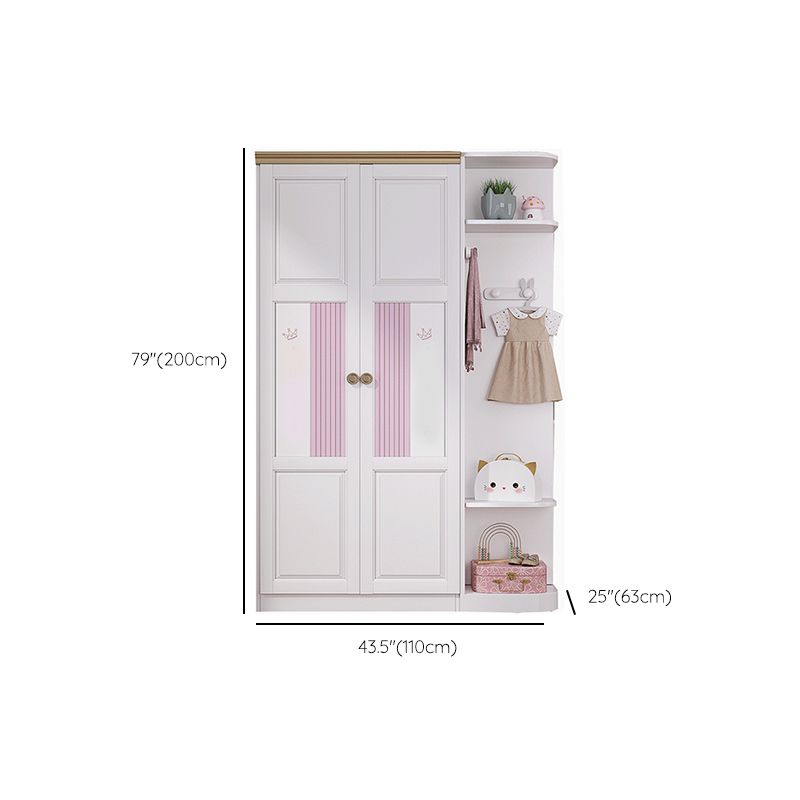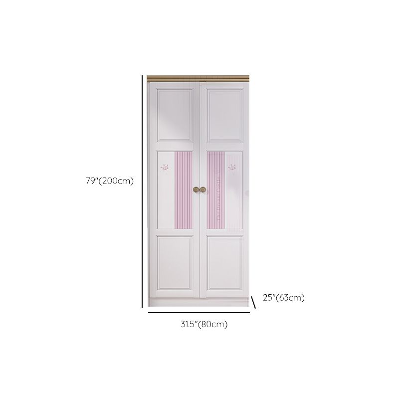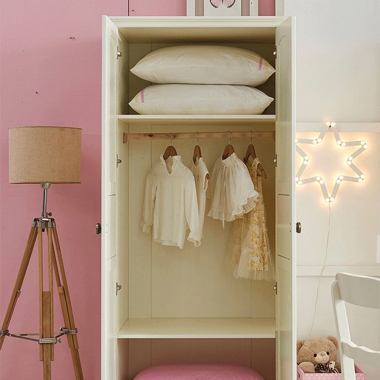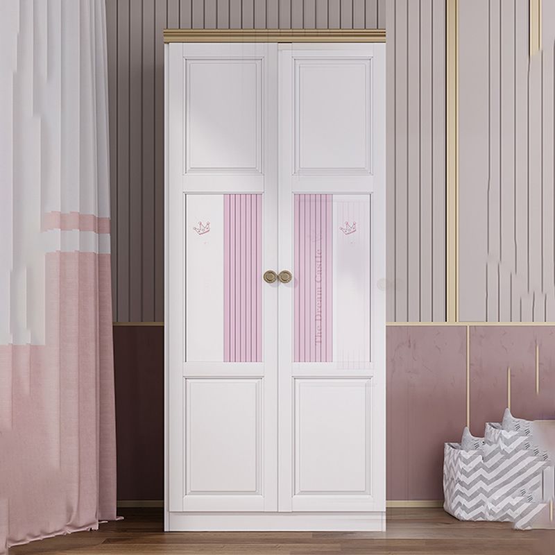 White and Pink Wardrobe Closet with Door Solid Wood Bedroom Armoire