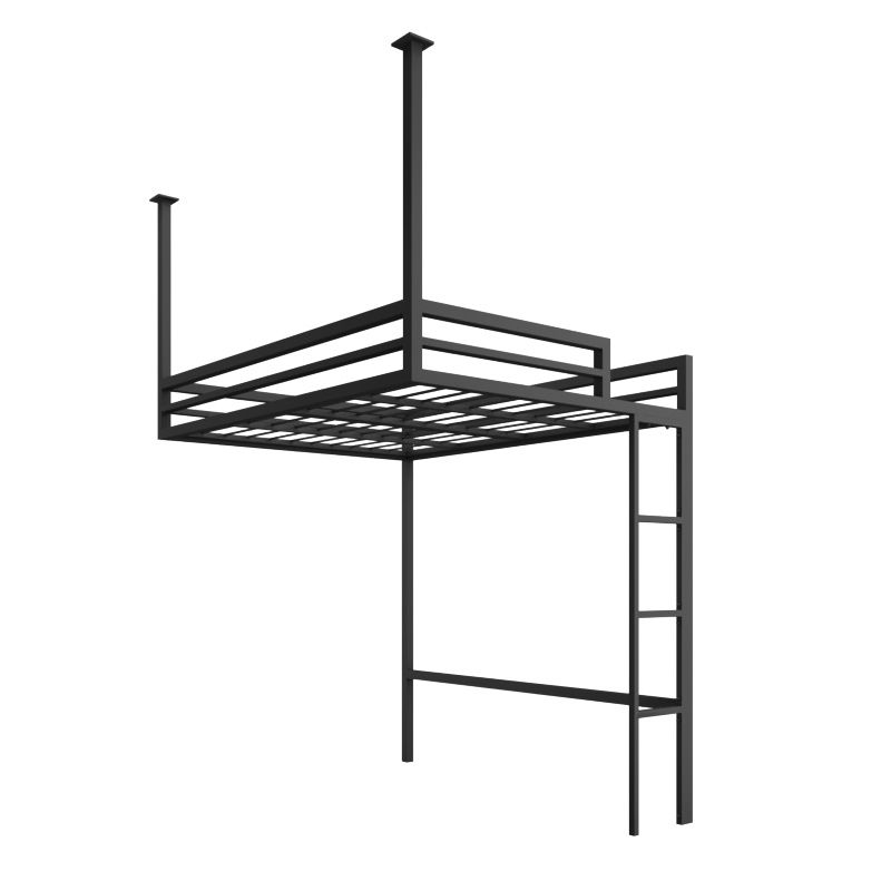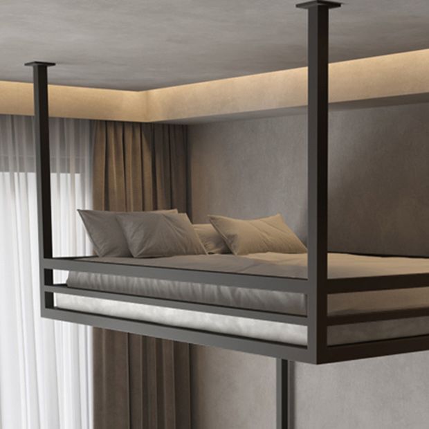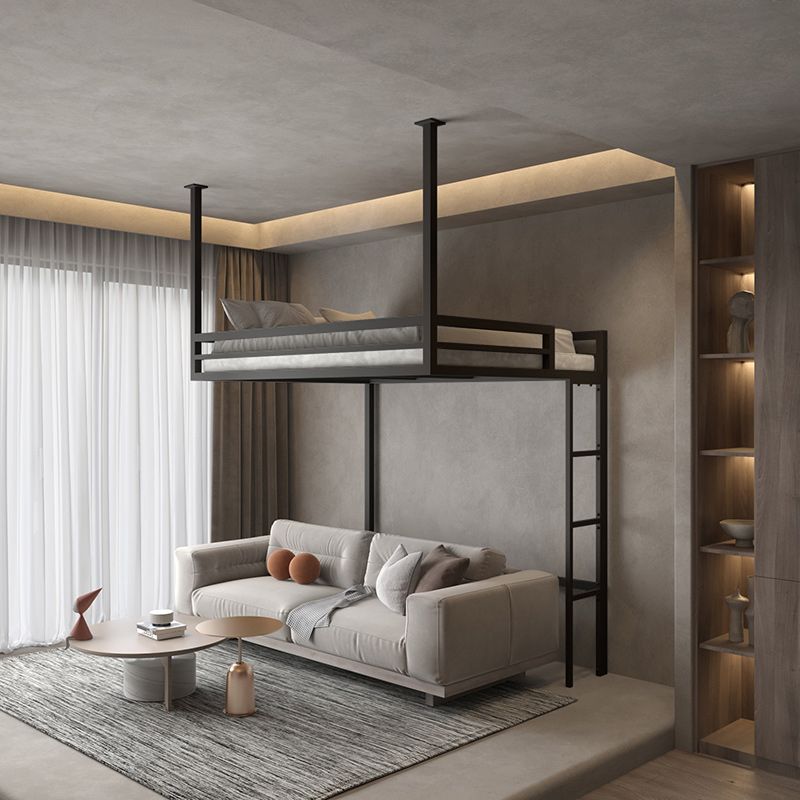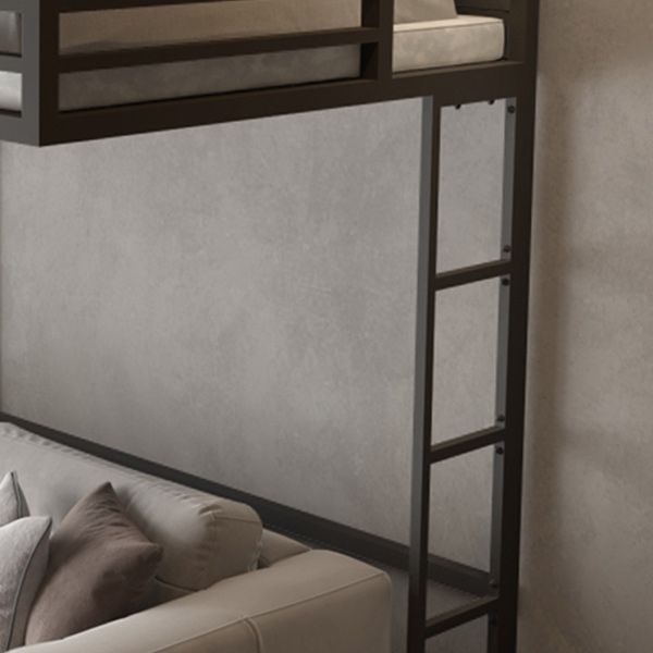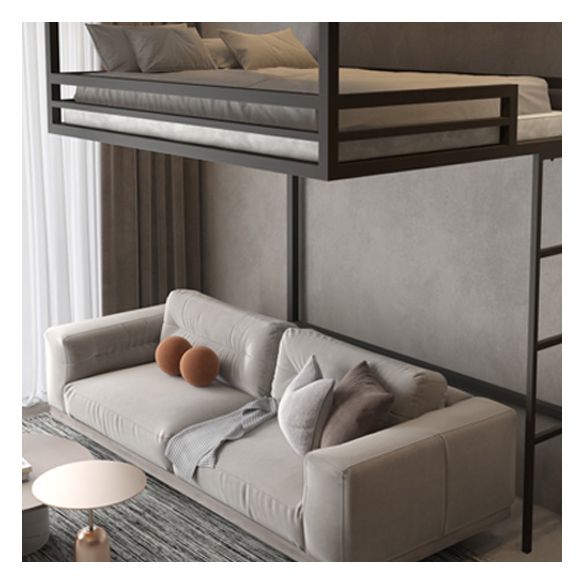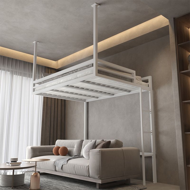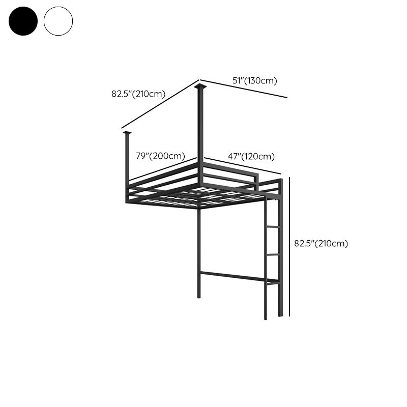 White/Black Loft Bed with Guardrail Metal Kids Bed with Built-In Ladder