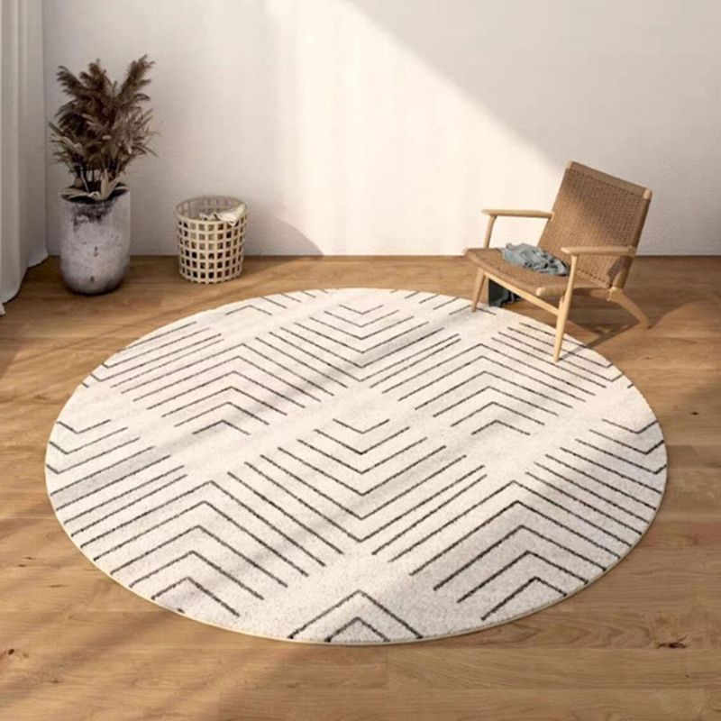 White Casual Rug Polyester Flower Rug Washable Rug for Living Room