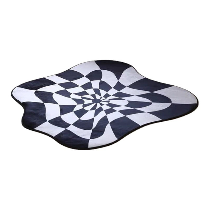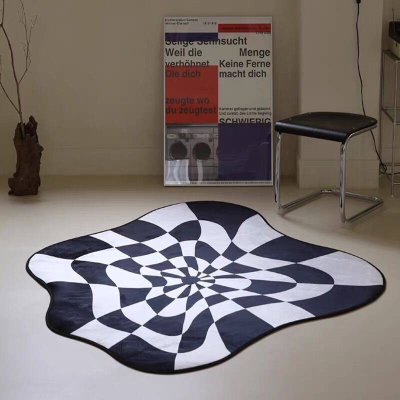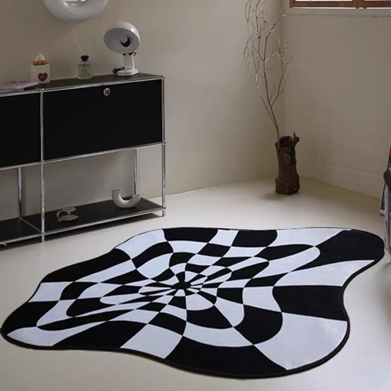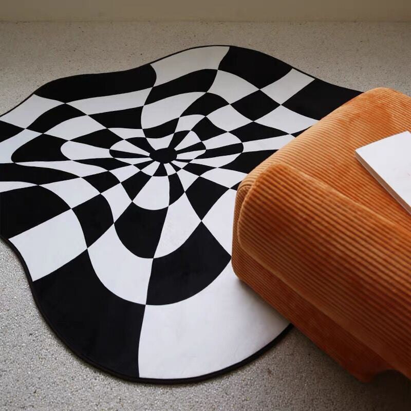 White Check Print Rug Polyester Modern Rug Washable Rug for Drawing Room
