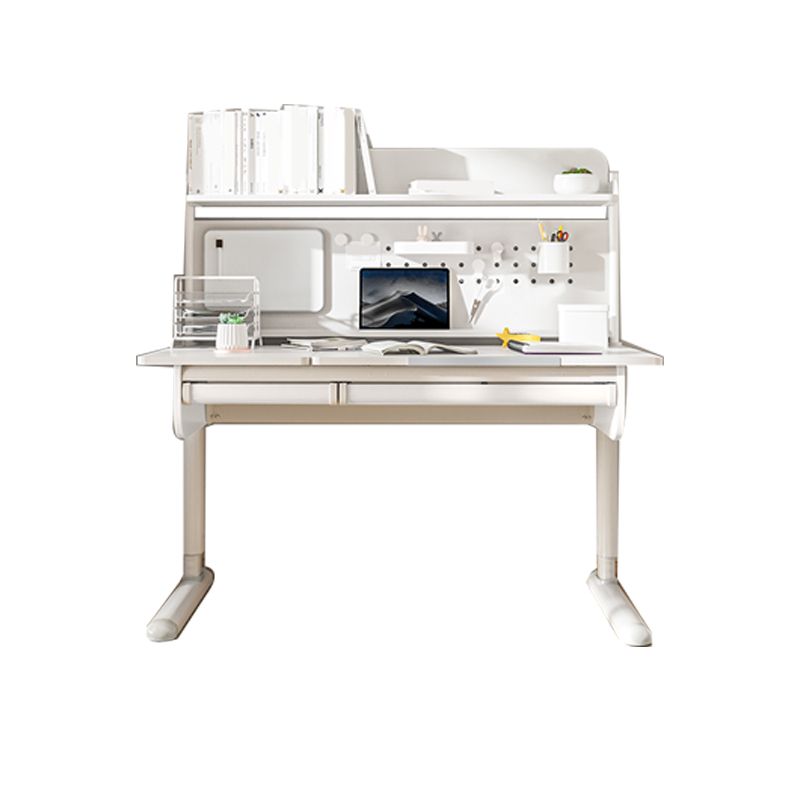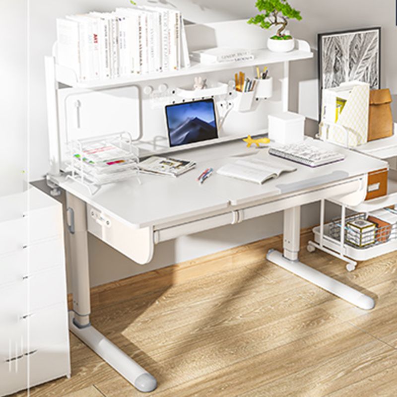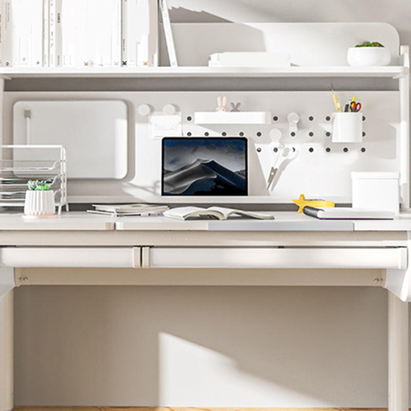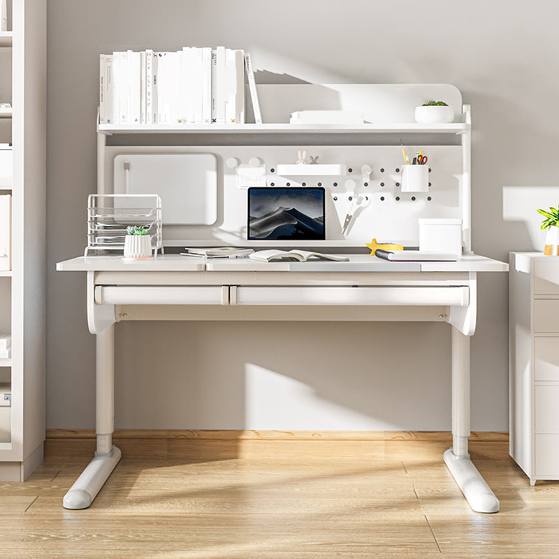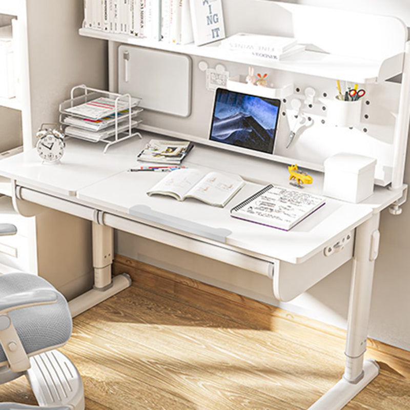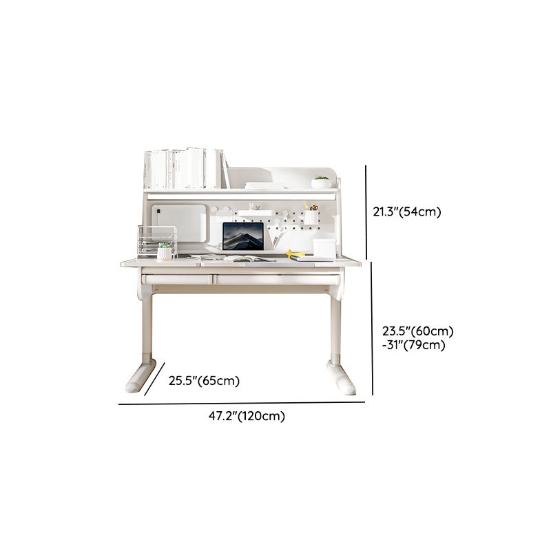 White Children's Desk with Storage Shelves Solid Wood Adjustable Student Table