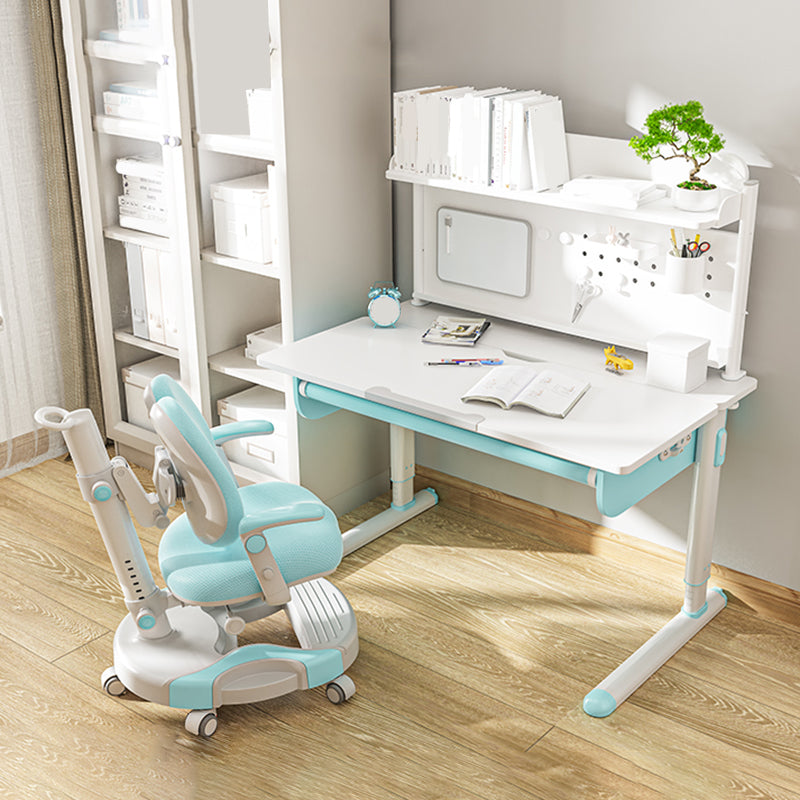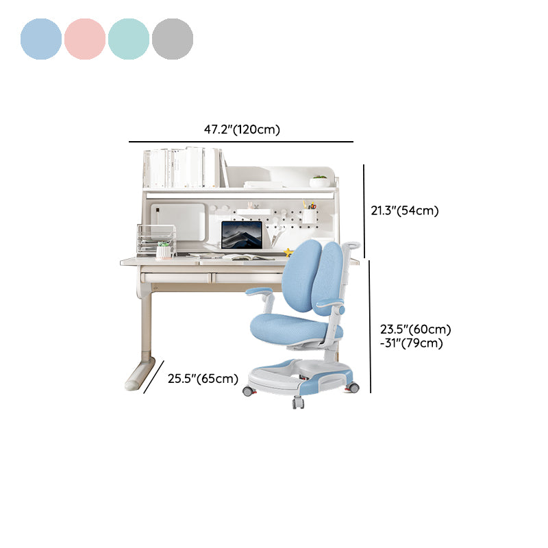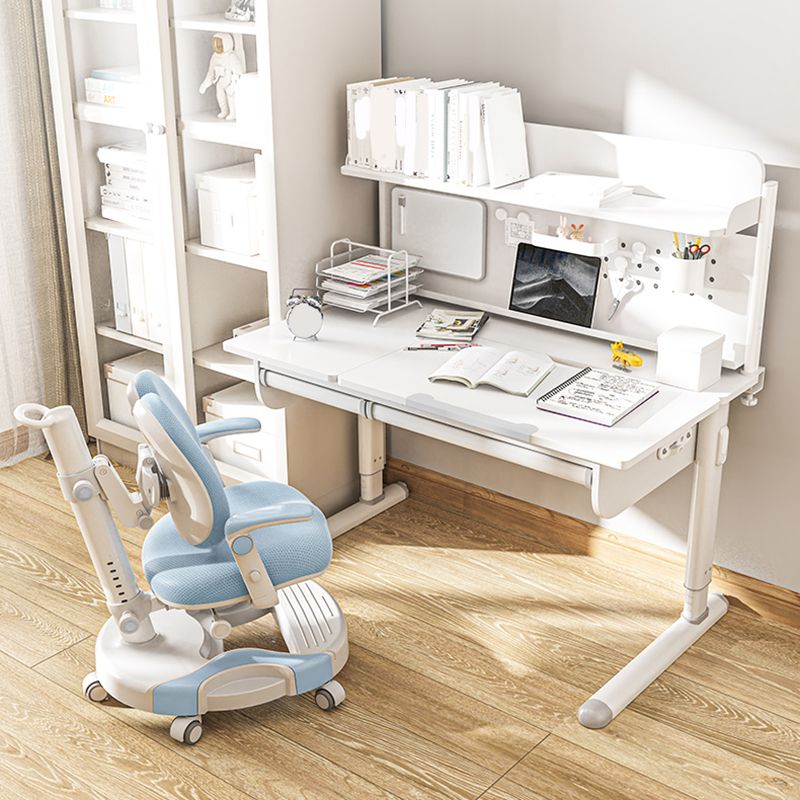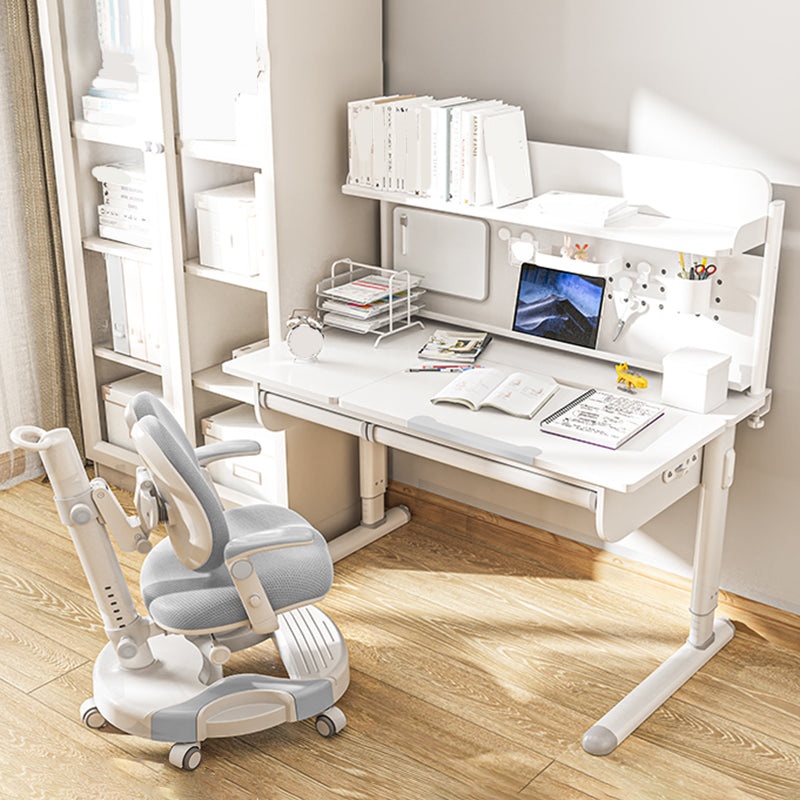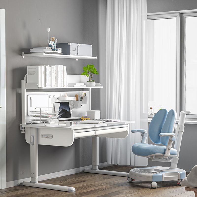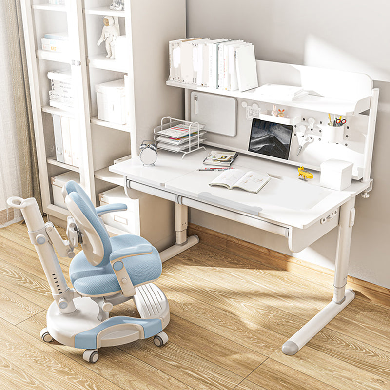 White Children's Desk with Storage Shelves Solid Wood Adjustable Student Table