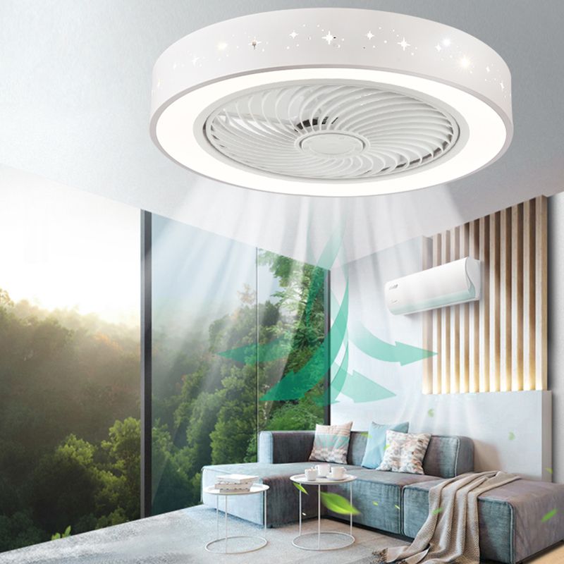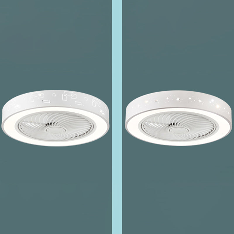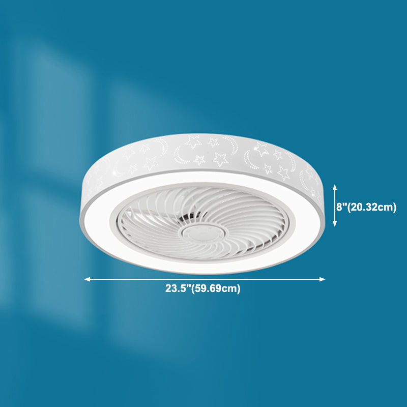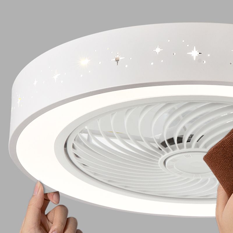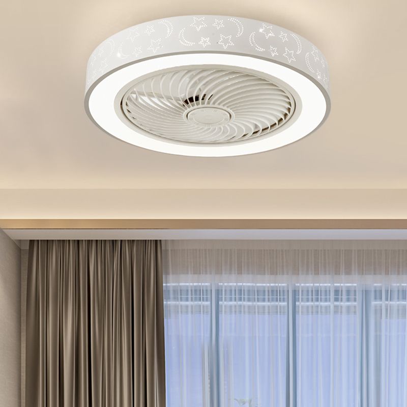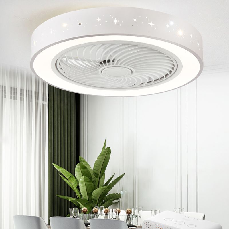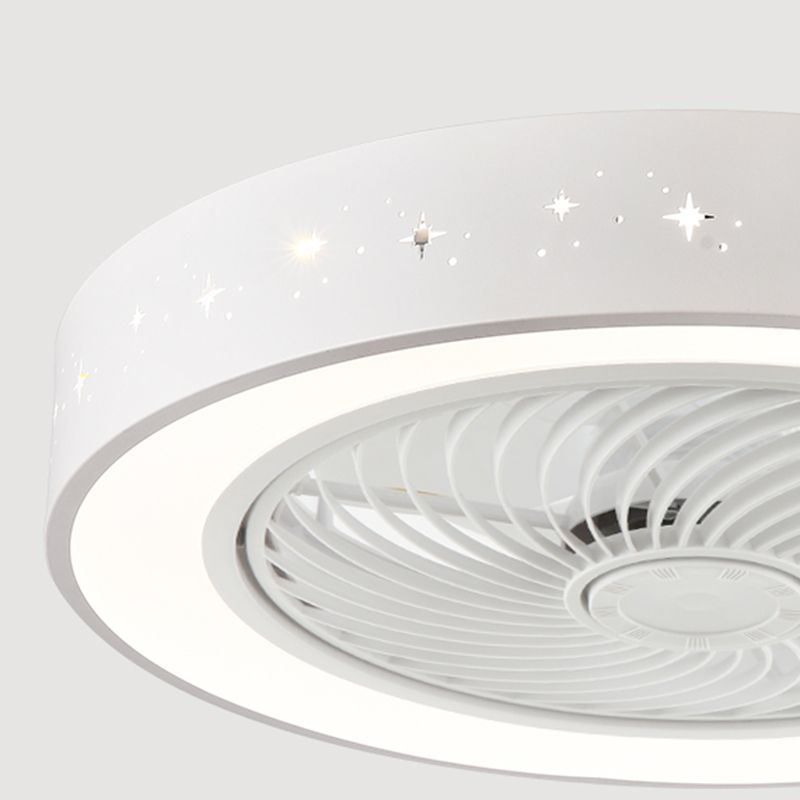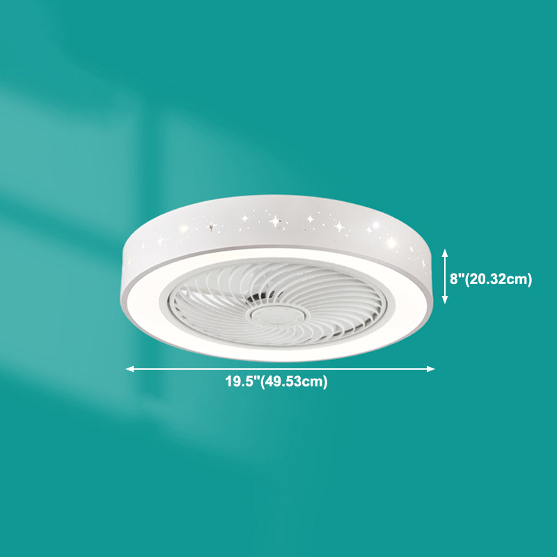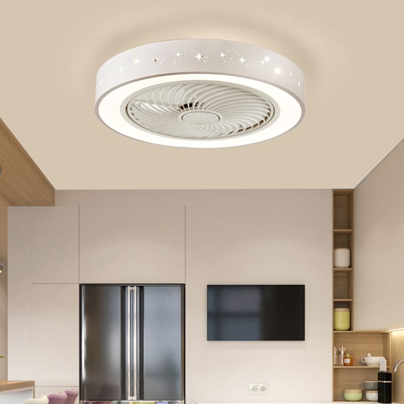 White Drum Flush Mount Fan Lamp Modern LED Semi Flush Light with 5 Blades