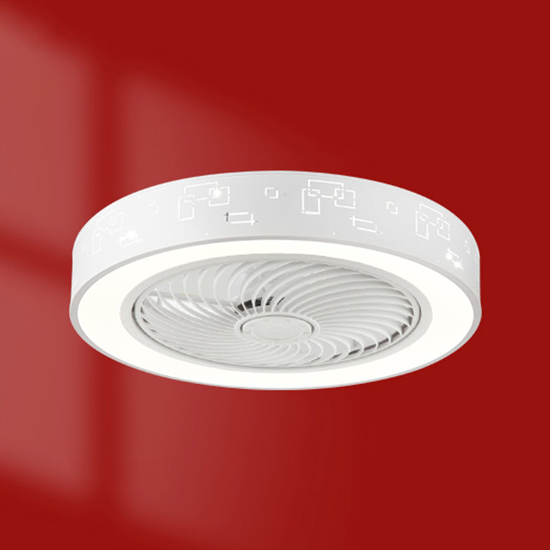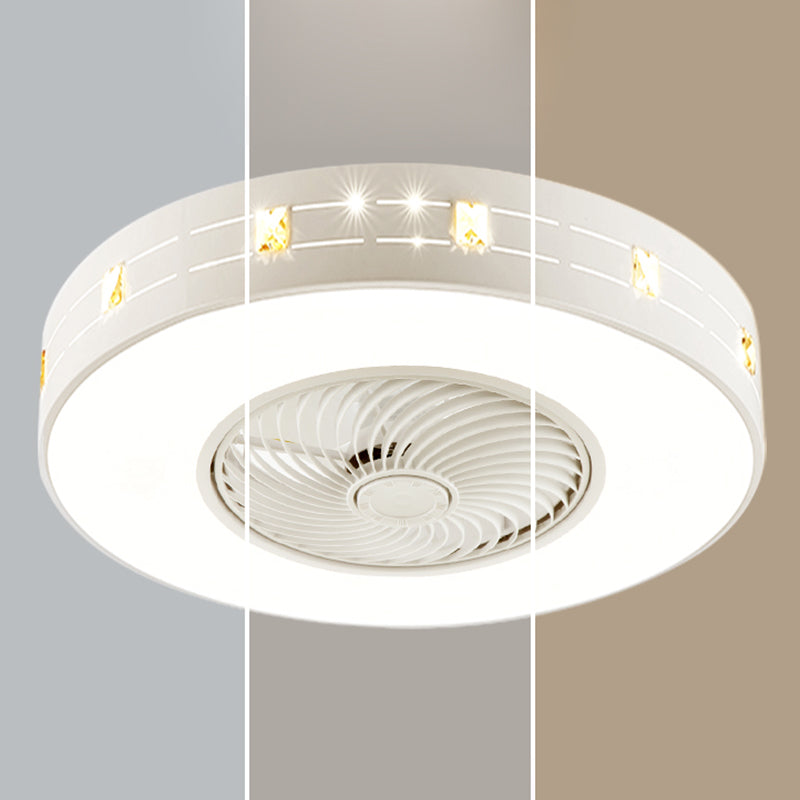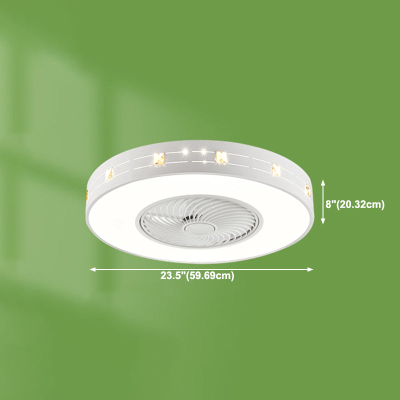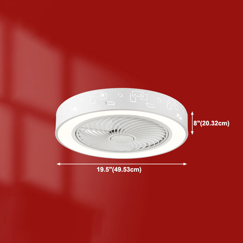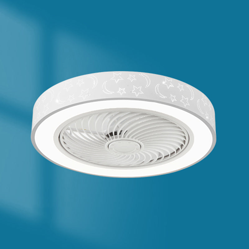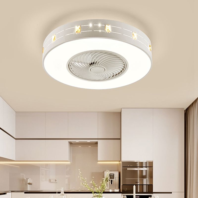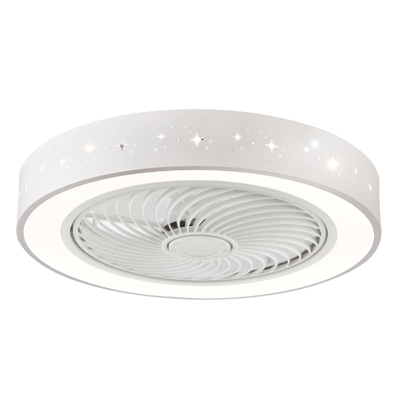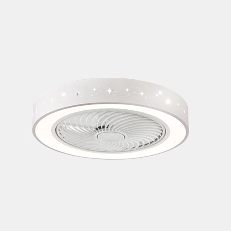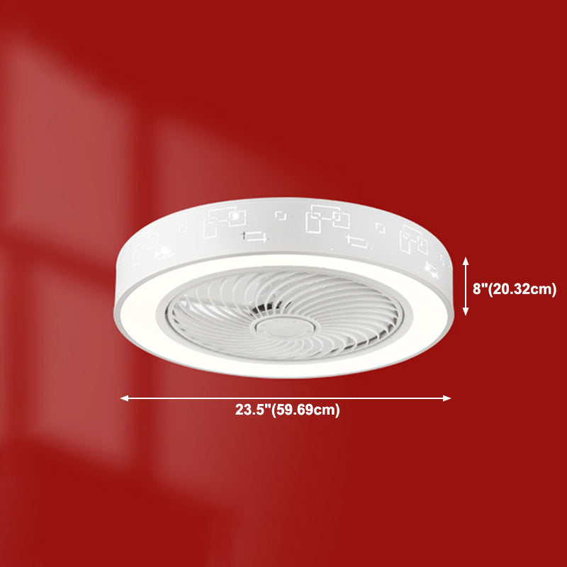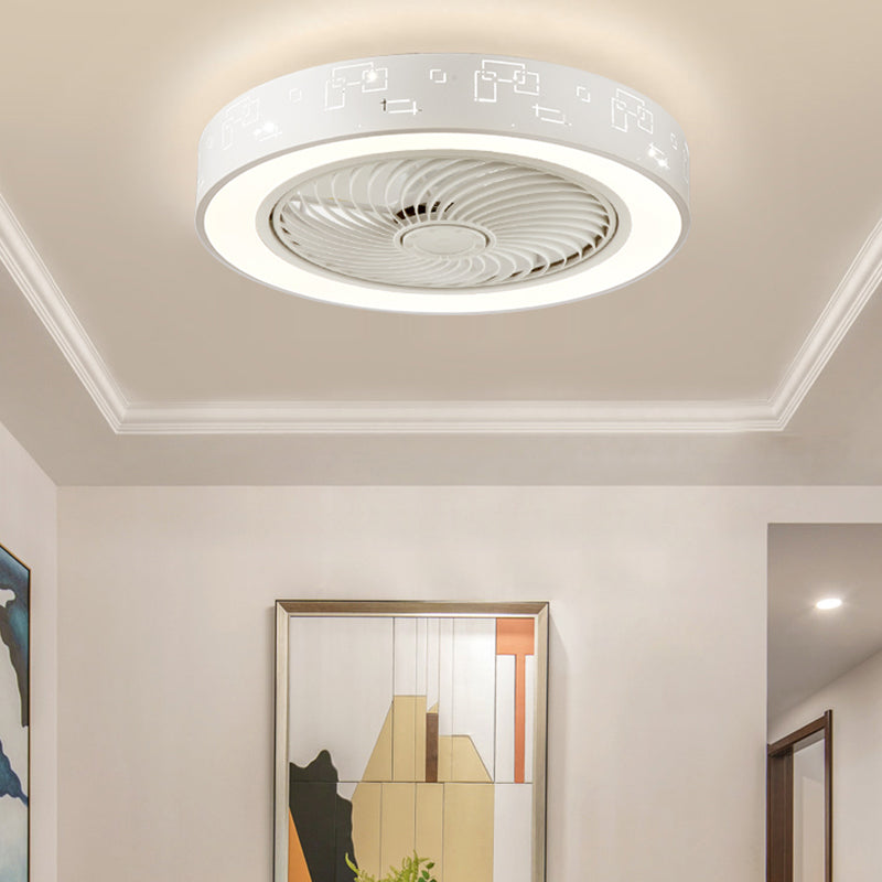 White Drum Flush Mount Fan Lamp Modern LED Semi Flush Light with 5 Blades
