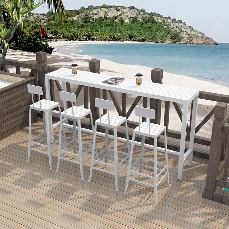 White Faux Wood Dining Table Set 1/2/5 Pcs Industrial Rectangular Dining Set