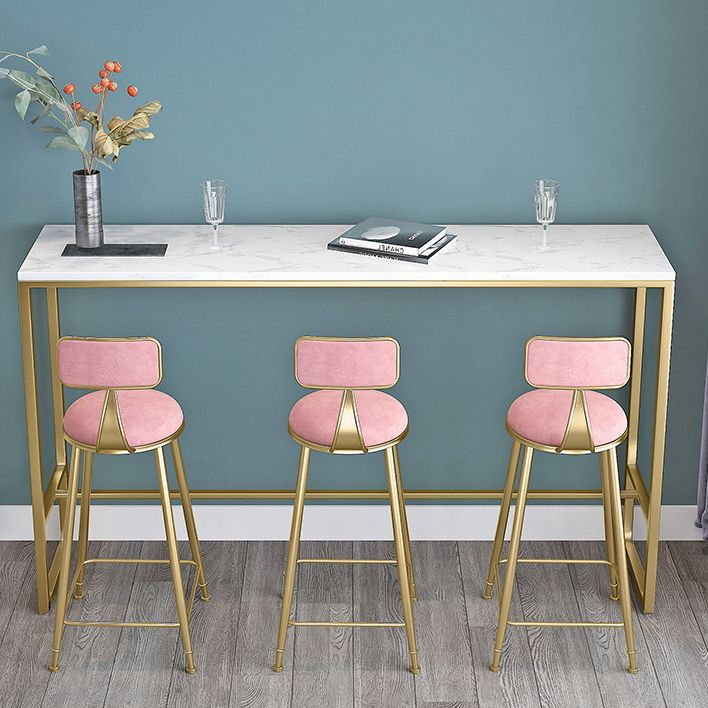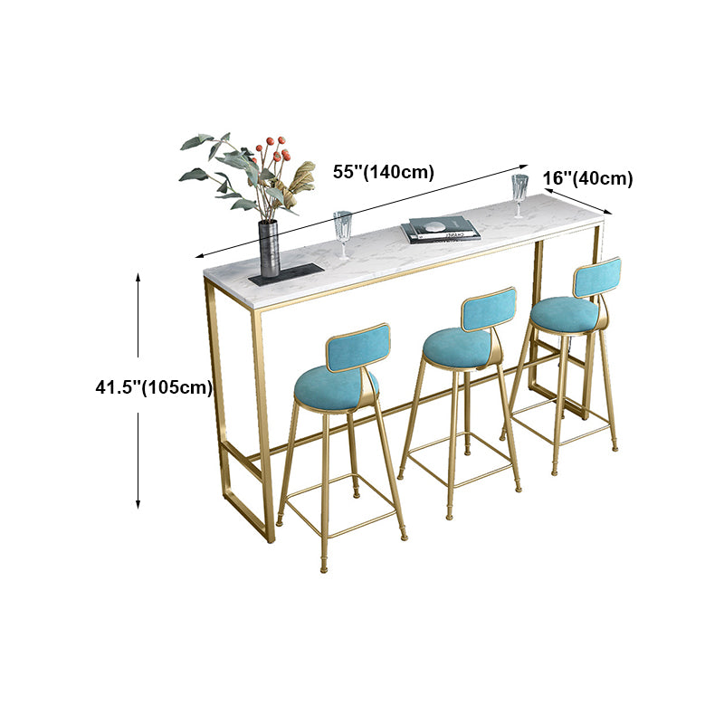 White Glam Style Bar Table in Faux Marble and Metal Bar Table for Living Room, Only Table