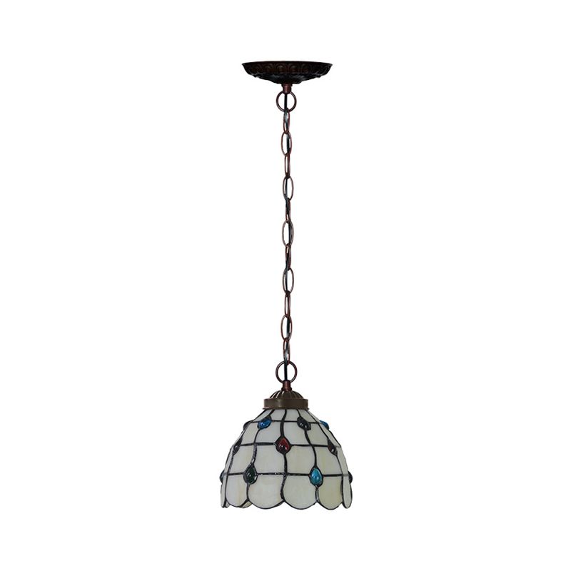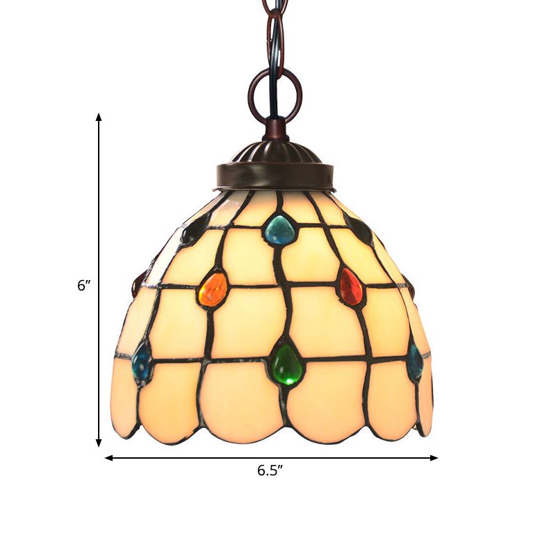White Glass Copper Suspension Light Lattice Dome 1 Light Victorian Hanging Lamp Kit with Gem Pattern