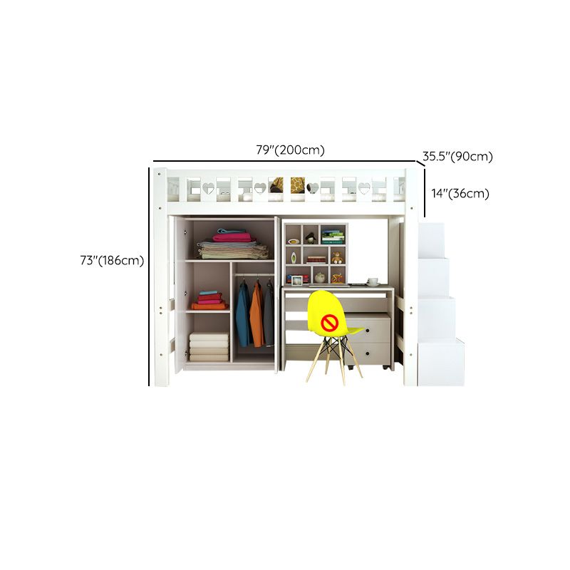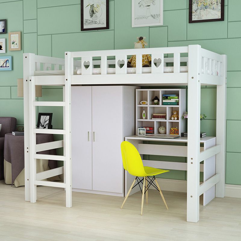 White Loft Bed Scandinavian Solid Wood High Loft Open-Frame Kids Bed