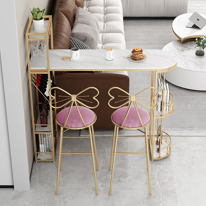 White Marble Bar Table with Specialty Table Top Double Pedestal Table- 41.3" H