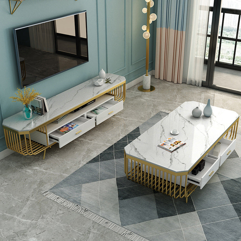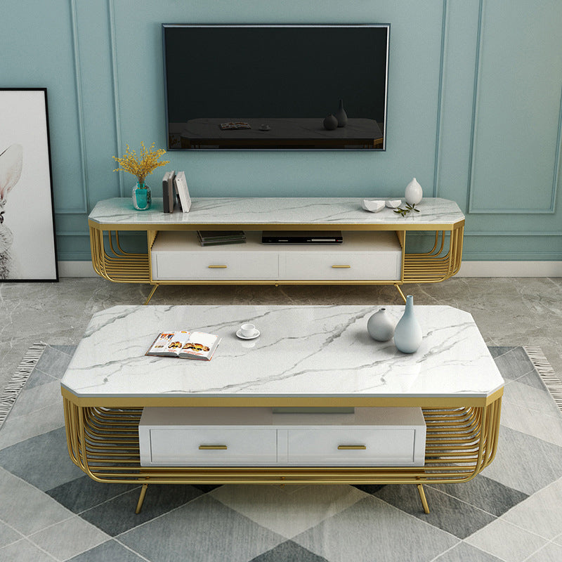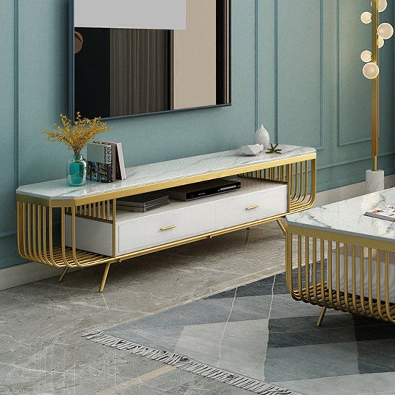 White Media Console TV Stand Open Storage TV Media Stand with Drawers