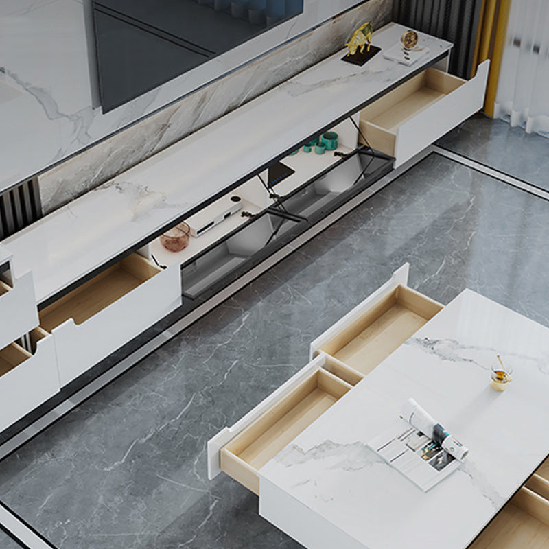 White Slate TV Cabinet Modern Minimalist Home Closed TV Stand Console