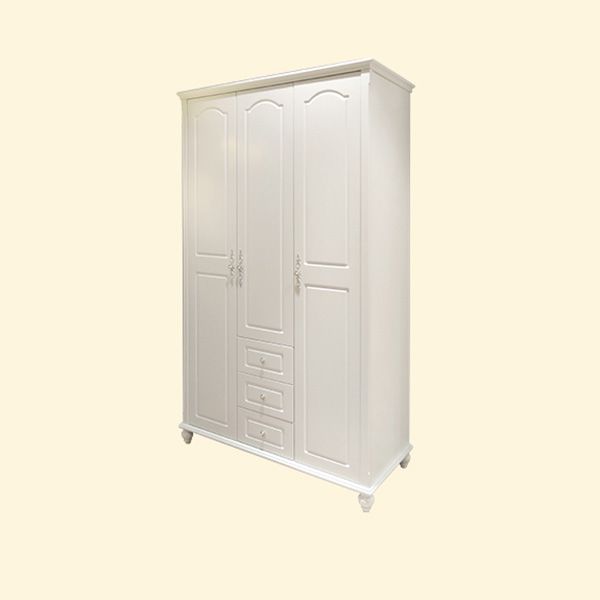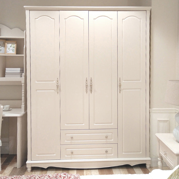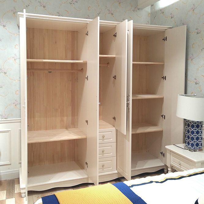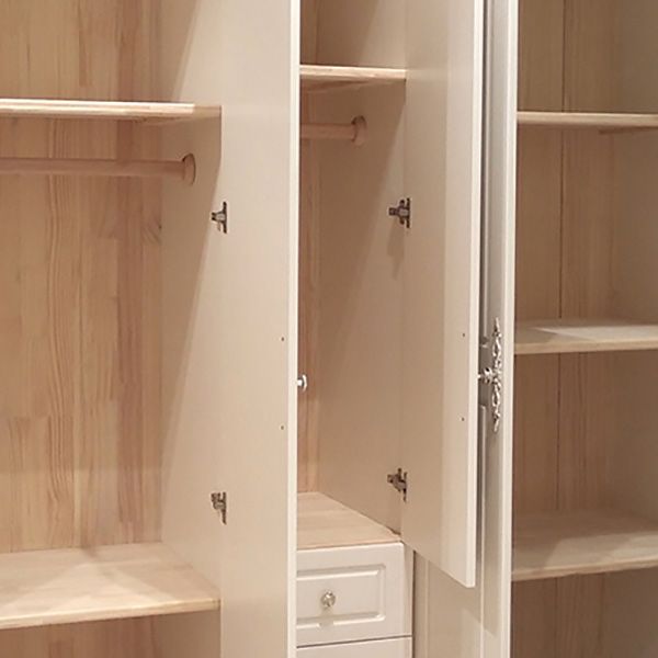 White Solid Wood Wardrobe Armoire Contemporary Hanging Clothes Rack